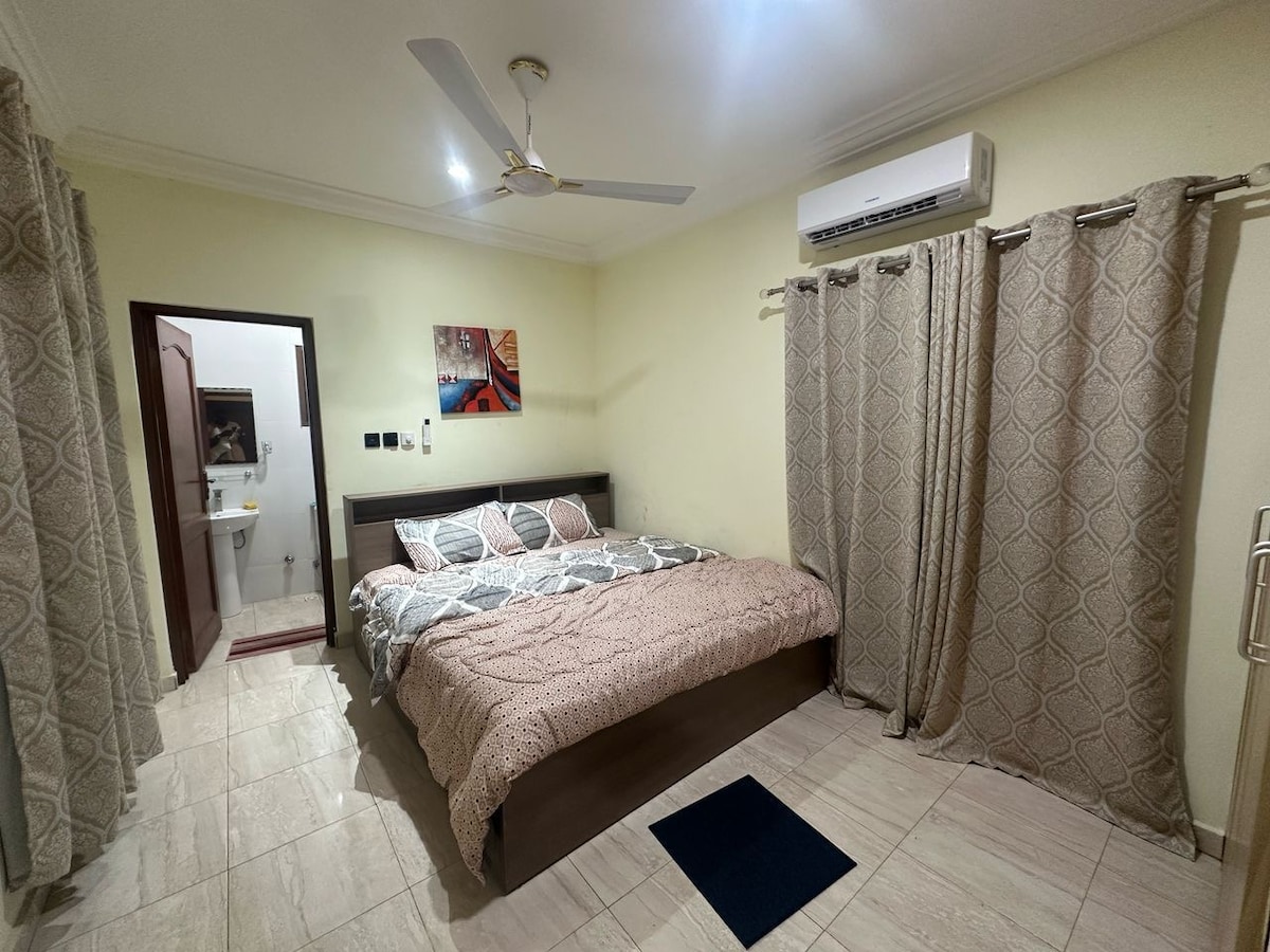Stay in an upscale place that’s near everything you want to visit. Comes with air conditioning, DSTV, private bathroom and washing machine