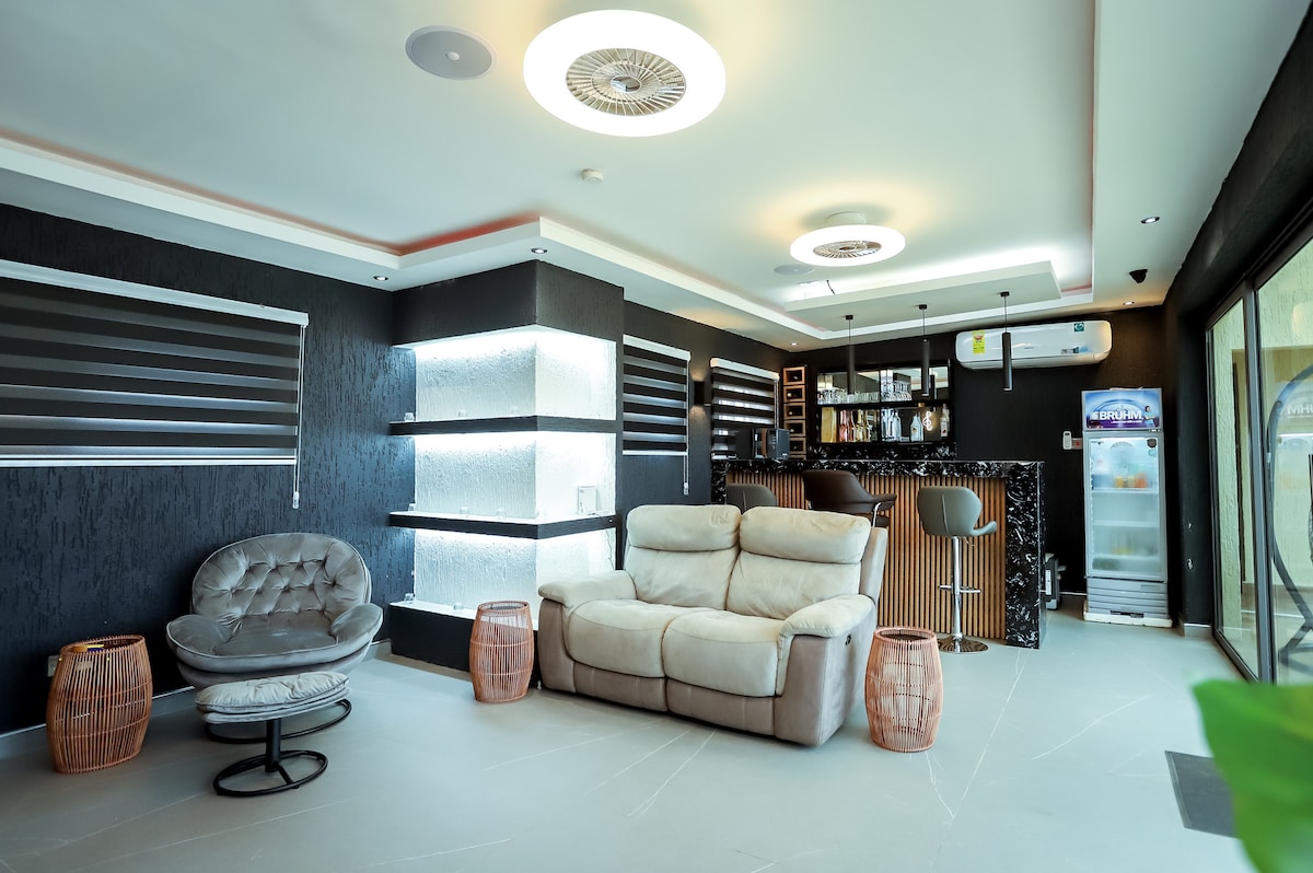 Welcome to Nubian Villa! ! A 4 bedroom luxury villa with 3 luxury bathrooms offering an enriching, enlightening and a splendour lifestyle experience. From an opulent design to bespoke amenities with a stunning private pool and an ultimate privacy. The Nubian Villa offers you an experience grandeur and perfection like never before. The villa has plenty of space, perfect for families , groups and business travellers. Outside, guests can enjoy the private pool, pergola and hanging hammocks