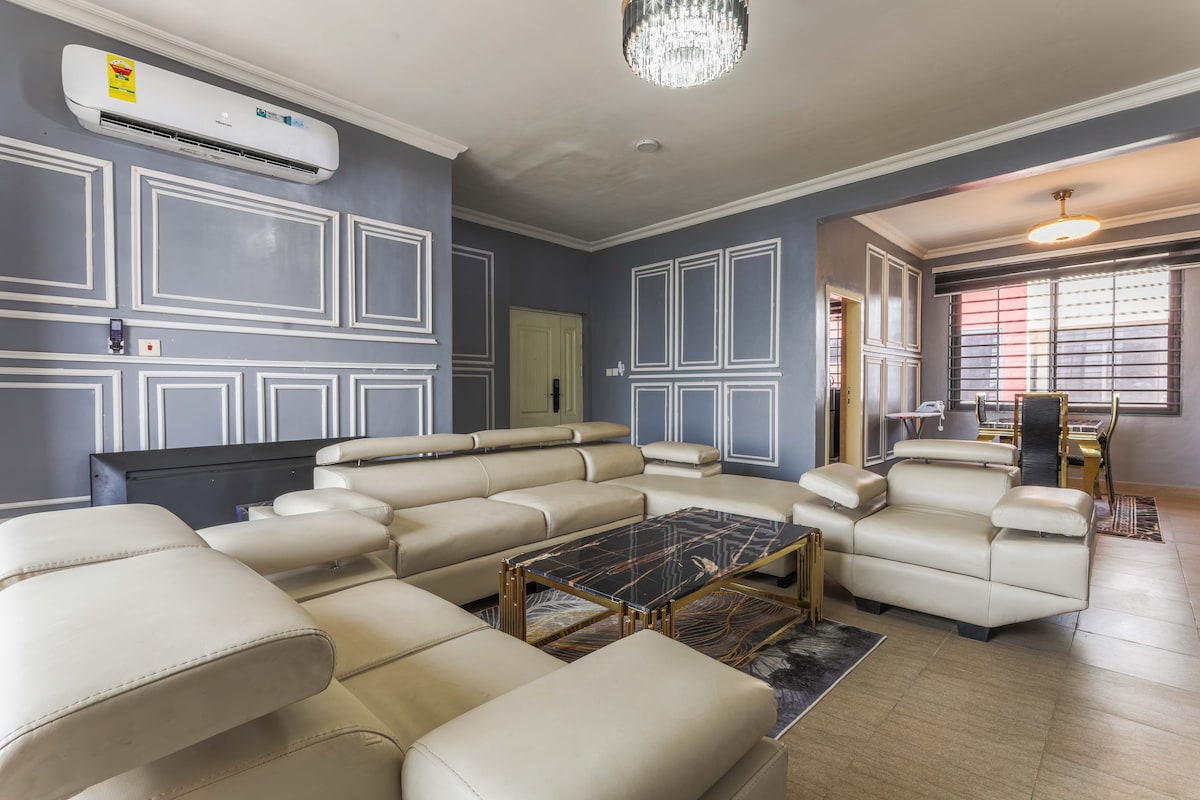 Escape and relax with whole family at this peaceful place, at KAS Valley Estate, Oyibi, just 20km from the Airport. Cozy property offering serene and beautiful hill views. Enjoy relaxing weekend getaway with all the unique comforts. Book your stay today and experience real comfort with your loved ones. Key features: •Fully Aircon rooms •WiFi free for short stays •Solar Power back up •DStv for entertainment •Water backup •Gym & swimming pool •Long stays available • Exclusive for guests use