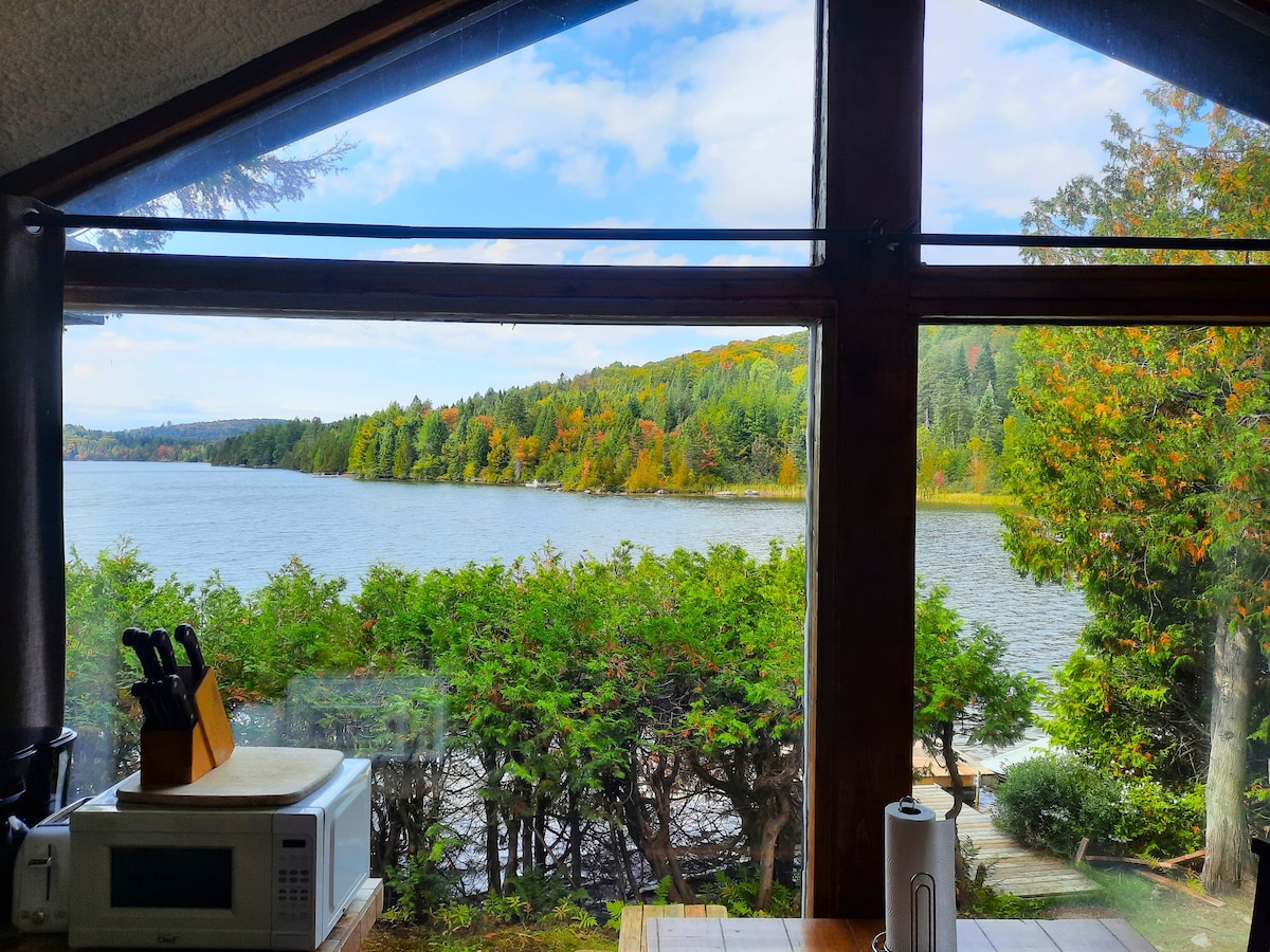 Chaleureux petit chalet rustique au bord du lac Sarrazin. (à moins de 25 pieds) Cuisine complète, télé câblé, internet Wi-Fi, foyer au bois, bain tourbillon double. pédalo et kayaks Endroit paisible et enchanteur. Tout ce qu'il vous faut pour déconnecter de votre vie quotidienne et routinière. À seulement 10 minutes de tous les services au besoin et 30 minutes du Mont-Tremblant. Sentier pédestre, sentier de motoneige, piste cyclable, raquette, ski de fond et plusieurs monts de ski à proximité.