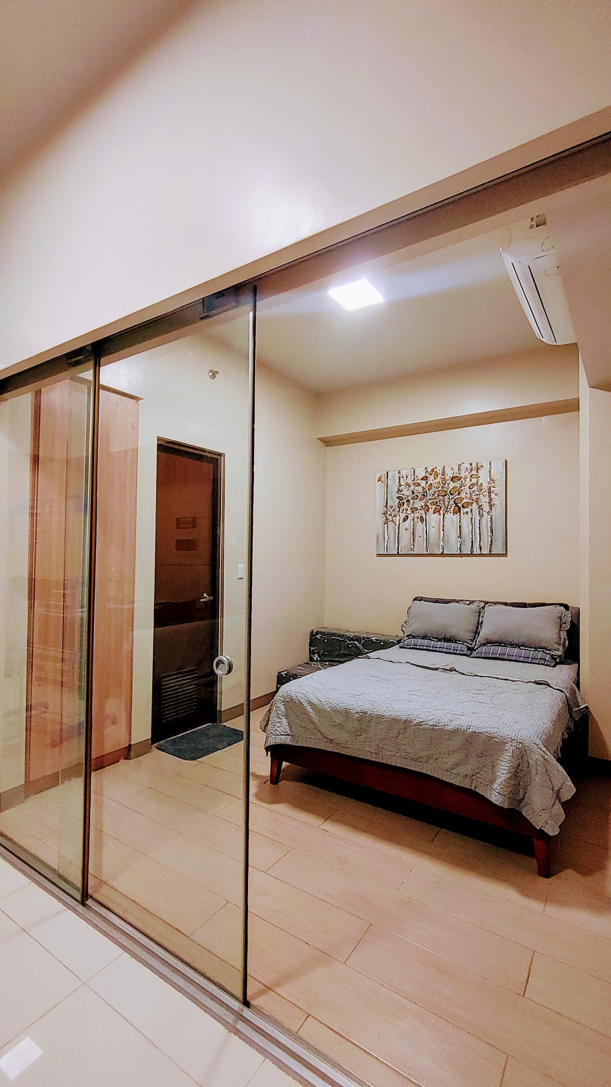 Your home away from home where the gentle breeze meets the soft sands, the sands meet the sparkling sea, and the sea meets the vast ocean under the warm embrace of the sun. Enjoy comfort and tranquility in our 1-bedroom corner unit with a queen-sized bed, a sofa bed for the extra 2 guests, balcony with a day bed to enjoy the breathtaking view. Located in Tambuli Seaside Living Tower D, just 12km from Mactan International Airport. *Minimum of 2 nights