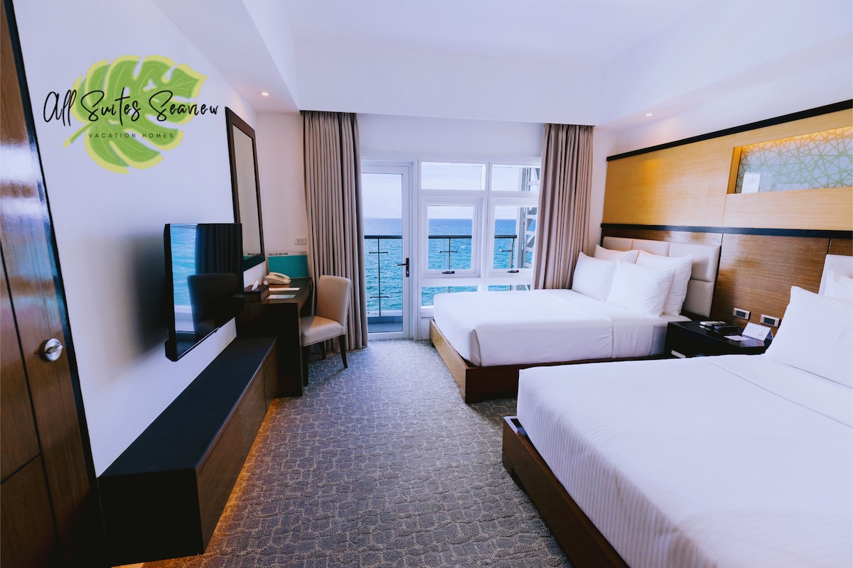 This comfortable and lovely 1BR Suite is your home away from home. Located on the high floor where you will find peace and tranquility, watching the sunrise and sunset in your own private patio. The patio has a view of the sea and lush greenery. All furnitures were meticulously picked and thoughtfully arranged to provide a homey feeling to all our guests. It is also equipped with high-speed internet, 55" smart TV in the living room, 43" in the bedroom and fully equipped kitchen.