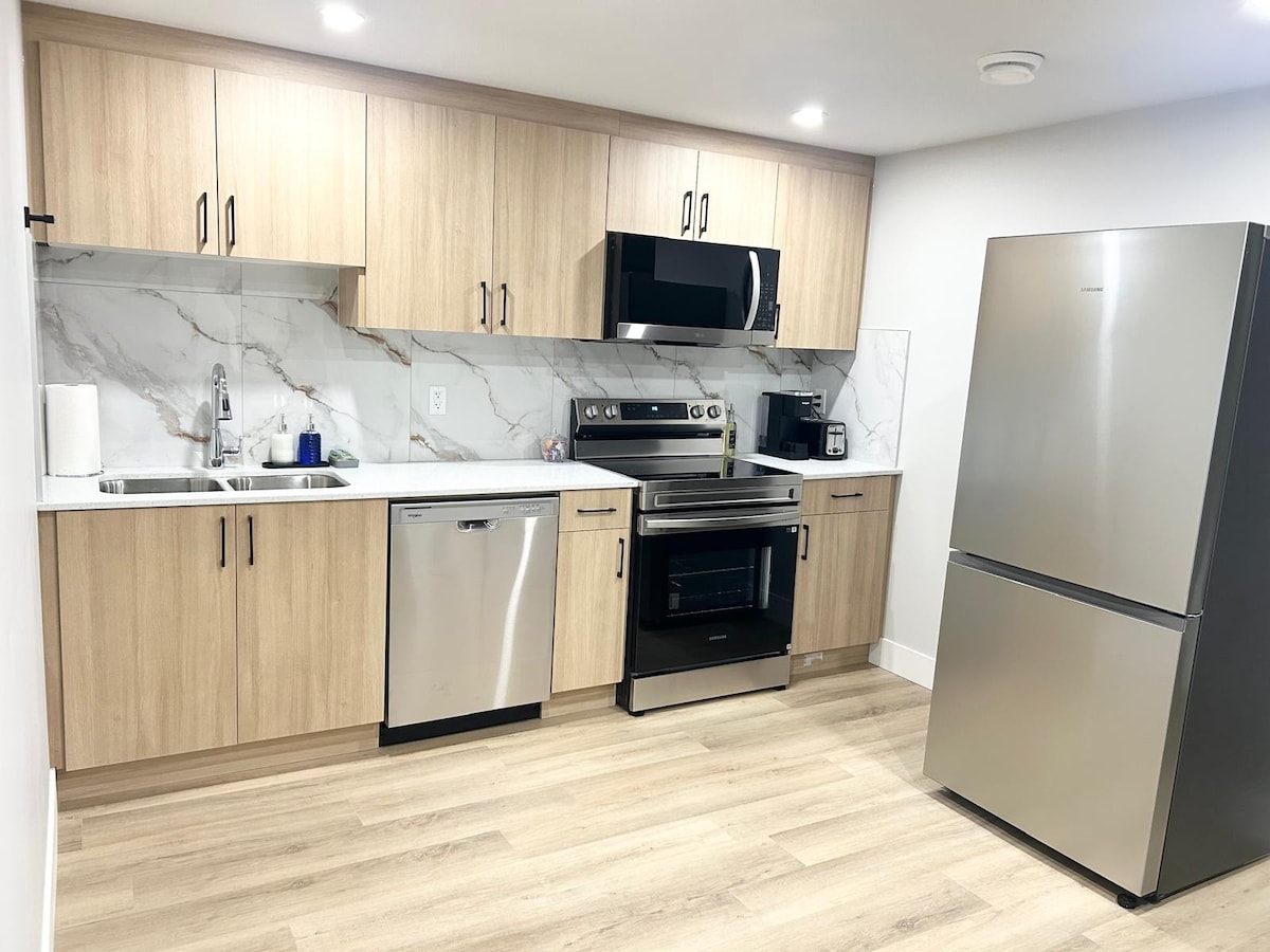 Kick back and relax in this zen looking, brand new stylish space! Enjoy the feature wall which lights up and provides a zen like experience. We are located 6 mins away from the world famous West Edmonton Mall, 15 mins to downtown and the University of Alberta! We are also just minutes to the Lewis Estates Golf Course, and the Rivercree Casino! We'd love to invite you to stay here. Book your stay with us today!