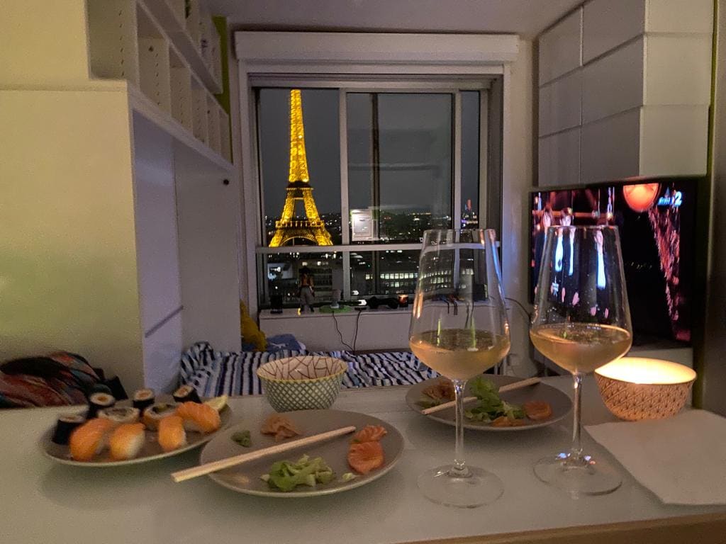 Very big and prestigious 55m2 studio who offer a stunning view with a huge bathtub JACUZZI, a very big bed as well as a Italian shower. Located in a quiet and safe area 10min from the famous Avenue des Champs Elysées (center of Paris). I offer for 95€ an optional “ROMANCE PACKAGE” to SURPRISE your love one. It comes with petals of roses, candles placed on a heart shape on the bed (a Happy Birthday sign can be added) and for 175€ it comes with a good bottle of champagne and strawberries! 🌹🥂🍓