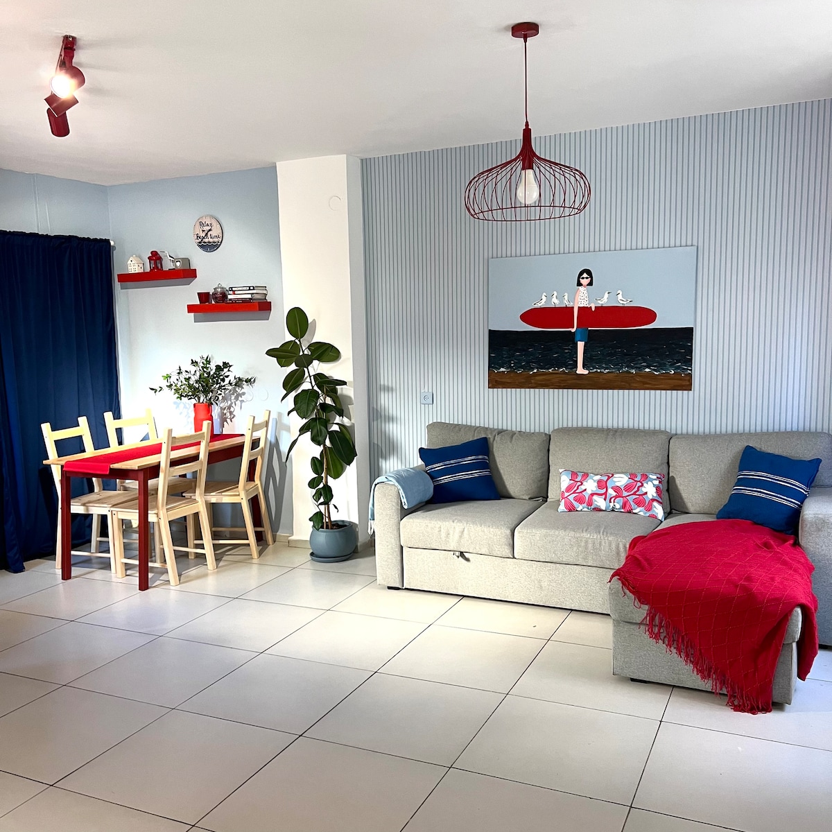 距离海滩50米的安静设计师公寓+花园