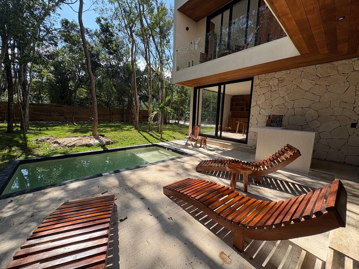 WELCOME TO THE JUNGLE! Jungla 3 House is a spectacular cristal-cubism designed house surrounded by nature-10 min from DT -6 min to the beach. Double gated security, very safe area. Back garden next to the pool,5 terraces to enjoy breathless sunrises & sunsets. Connect your beautiful energy with nature & sacred mayan land, watch exotic birds, meditate while listening to the fountains, watch the stars in a hammock, enjoy the huge pool around trees & birds and relax in the bathtub watching sunset.