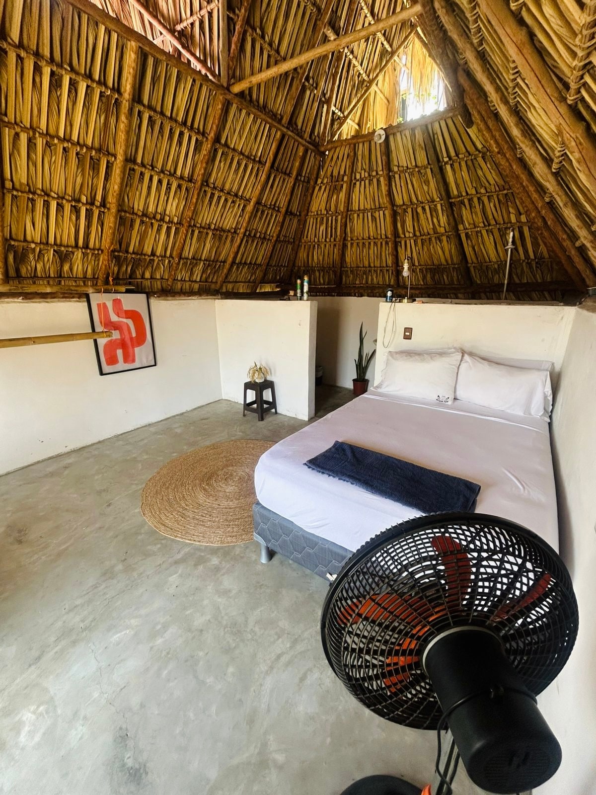 El Nido "the nest" is our little beach house. Perfect for a couple. Cozy for up to 3. One lot back from the beach, this two-story bungalow is conveniently located between the village and hotels. Just a few steps from the black Pacific sands, our breezy beach reprieve is an ideal setting for relaxation, surf, yoga or diving into a book. Open-air everything allows ocean breezes and the palm covered second story provides privacy while still having that open air feel.