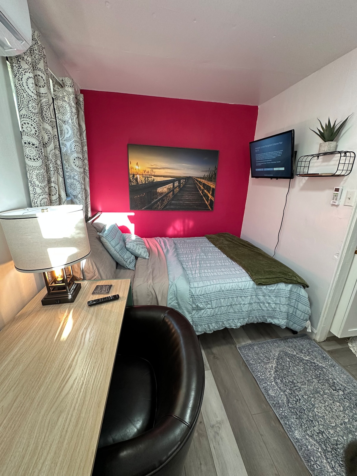 This stylish studio is located minutes away from UTEP, up the street from Top Golf and IFly, and just a short drive from El Paso’s downtown nightlife. This eclectic space includes private parking, queen size bed, private bathroom, 1 television in the bedroom. It’s within walking distance from N. Mesa street eateries. Mini fridge, coffee maker & microwave ensuite. ART is for sale at different prices. Use cash app or leave cash. *Not ideal for limited mobility guests*