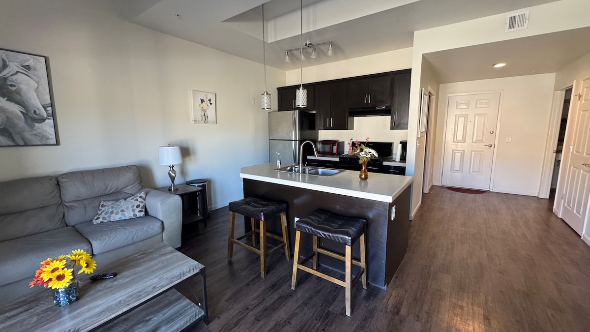 Enjoy a stylish experience at this centrally-located place. Property consists of 2 bedrooms, modern kitchen with quality appliances, 2 smart TV's, 2 full bathrooms, and living/dining area. Property is located in a nice neighborhood. Bedrooms are lavishly decorated with comfortable beds. Our residence offers private parking (car garage/driveway). Close proximity to Las Palmas Marketplace, nice restaurants, and supermarkets. Quick 1 minute access to I-10. A 8 minute drive to Cielo Vista.