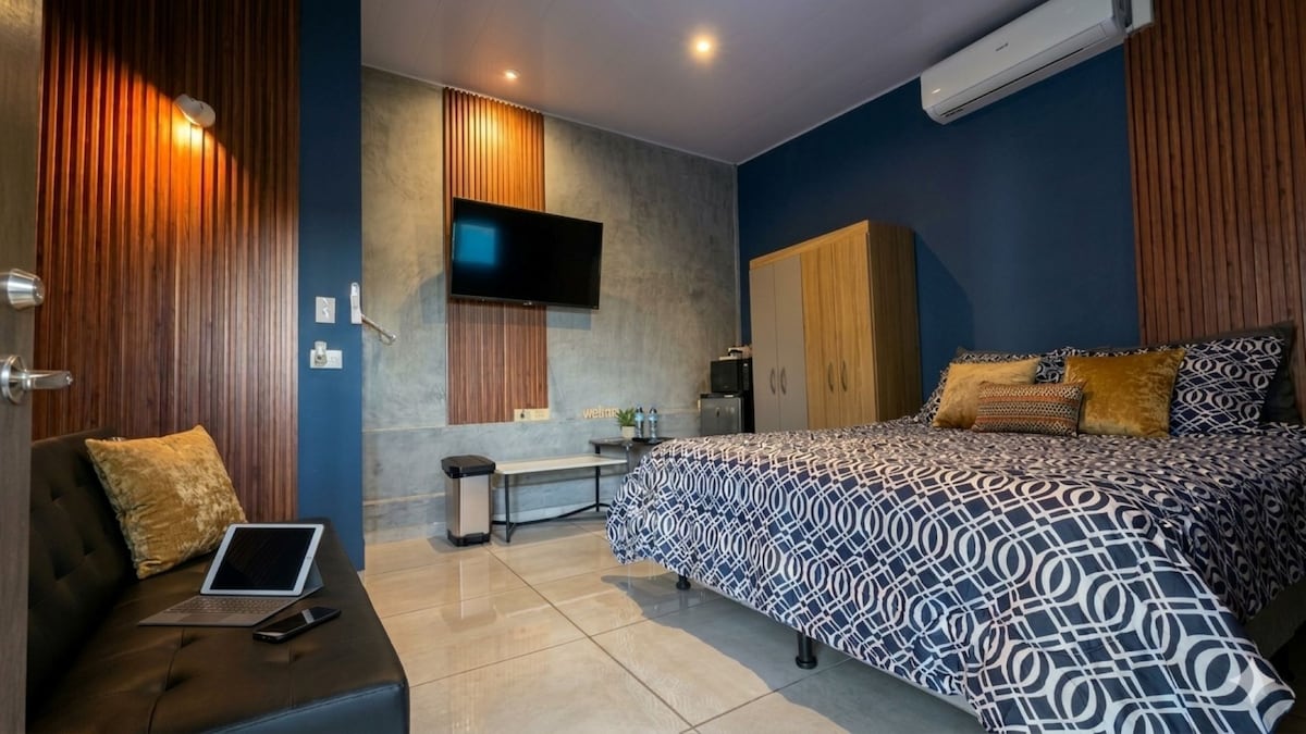 Disfruta una estadía con estilo en esta suite tipo estudio ubicada en una de las zonas más exclusivas y céntricas de Nuevo Cuscatlán. A pocos minutos de la Embajada Americana y de los principales centros comerciales, este espacio ofrece un ambiente fresco, privado y sumamente agradable. Cuenta con todas las comodidades necesarias para una estancia confortable, además de acceso a las áreas verdes de la residencial, donde podrás disfrutar de piscina, baños, cancha de basketball y un entorno seguro