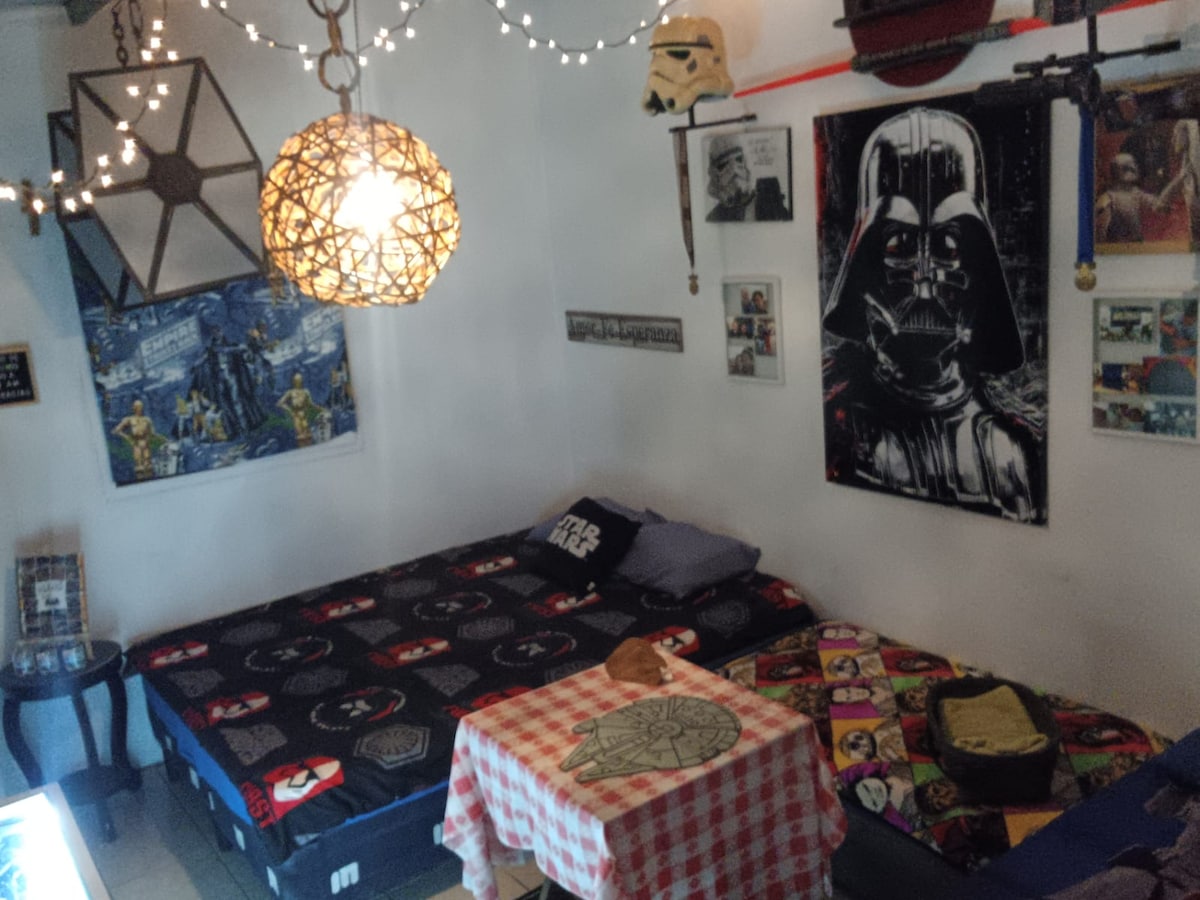 Cómodo mini apartamento PRIVADO con 2 camas, ubicada en una zona céntrica, tranquila y segura de San Salvador. Está ubicada dentro de residencial y casa privada pero con entrada independiente Baño propio, A/C, Wifi, Smart TV de 50” con Netflix, closet, refrigeradora pequeña, parqueo exterior, etc. La propiedad se encuentra cerca del Estadio Cuscatlán y a 10 min de centros comerciales como La Gran Vía, Multiplaza, El Salvador del mundo, y a 5 min de Starbucks, restaurantes, farmacias, etc.