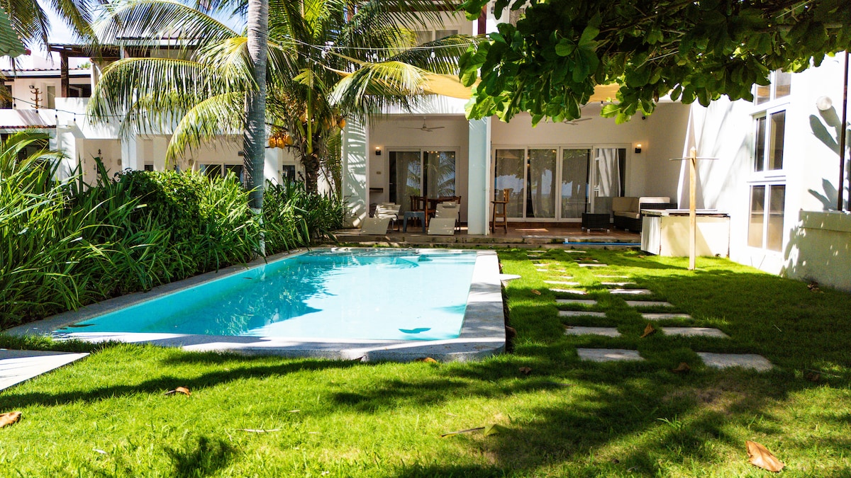 Welcome to Oasis Miraflores! Built in 2022, our modern retreat features 3 spacious bedrooms with private bathrooms, a fully equipped kitchen, living room with flat-screen TV and Xbox, plus Wi-Fi. Outside, enjoy an 8×6m pool surrounded by trees, beach chairs, and a BBQ area—perfect for relaxing with family in a tropical setting. Open 365 days a year, your oasis awaits!