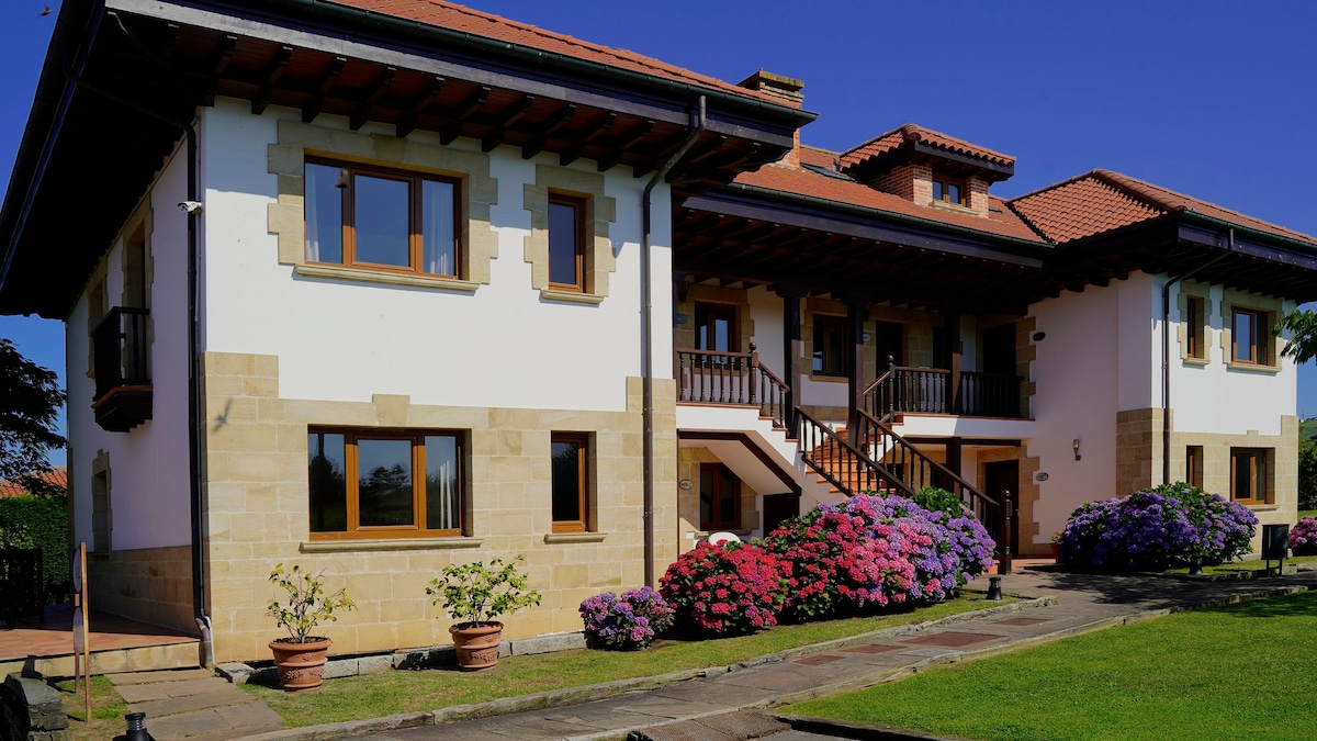 - Spacious apartment for up to 4 people* in a rural property with mountain views. (Read property details for more information) - Independent private entrance and garden. - 10 minutes drive to local services. - Perfect place to disconnect, avoid crowds and relax. - 25 mins drive to beaches and Santander. - Travel cot and low bed available for babies and toddlers -Outdoor covered barbecue kitchen with charcoal and gas grill.