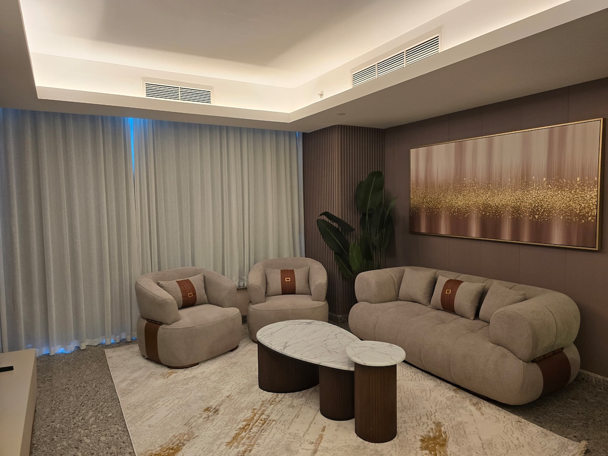 Luxuriate in a hotel-style stay at this luxurious smart apartment in Sheikh Zayed. Enjoy two elegant master suites with private bathrooms, a third room with a sofa bed, private jacuzzi, 65” Smart TV, sound system, smart lighting, central A/C, and keyless entry. Located in a quiet, upscale area near restaurants, malls, and hospitals. Perfect for families, youth, and business travelers seeking privacy, luxury, comfort, and a premium experience.