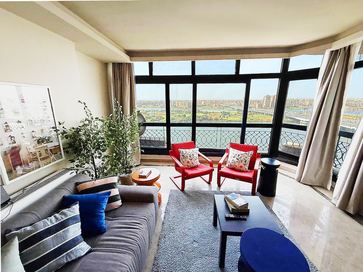 Welcome to Brassbell Nile View! This modern 1-bedroom apartment in Zamalek offers stunning full Nile views. Located in one of Cairo’s most vibrant areas, it features a fully equipped kitchen, cozy living space, and stylish decor. Enjoy exceptional service and the best of city life with cafes, restaurants, and cultural sites just steps away. Whether for business or leisure, this serene retreat has everything you need for a comfortable stay. #601