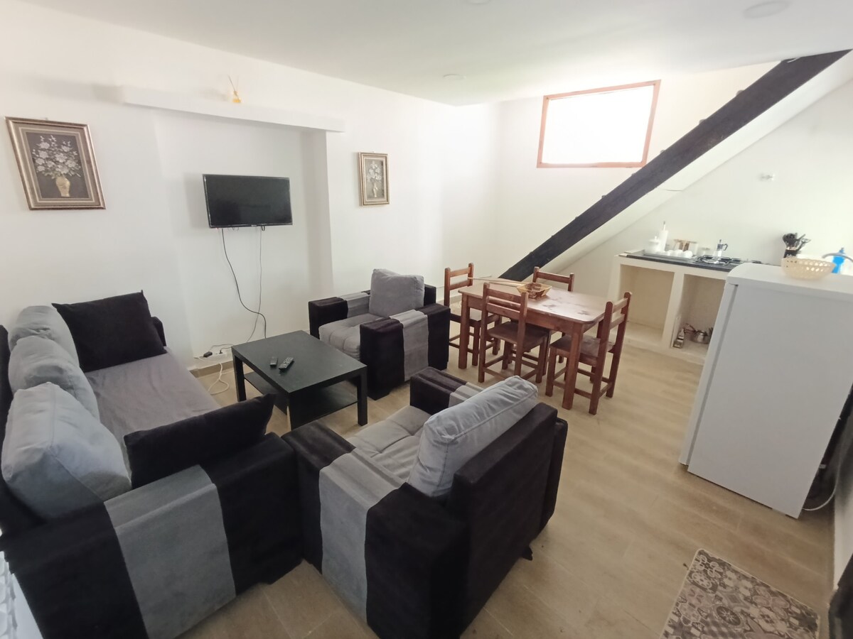 *** Petit dej inclus 😊 Dans une vieille maison en pierre, à 20 mètres de l'hôte El Mountazih, vous séjournerez dans un F3. Au 1ère étage, vous contemplerez le coucher de soleil et vous observerez les étoiles. Le soir, sur la braise du barbecue vous dégusterez de succulentes brochettes. Votre petit déjeuner sera parmi une diversité de fleurs endémiques . Pour vos sorties, les quads, le parapente, les randonnées, les sorties en bateau … vous attendent. Garage couvert non inclus : +5€ / 2 jours