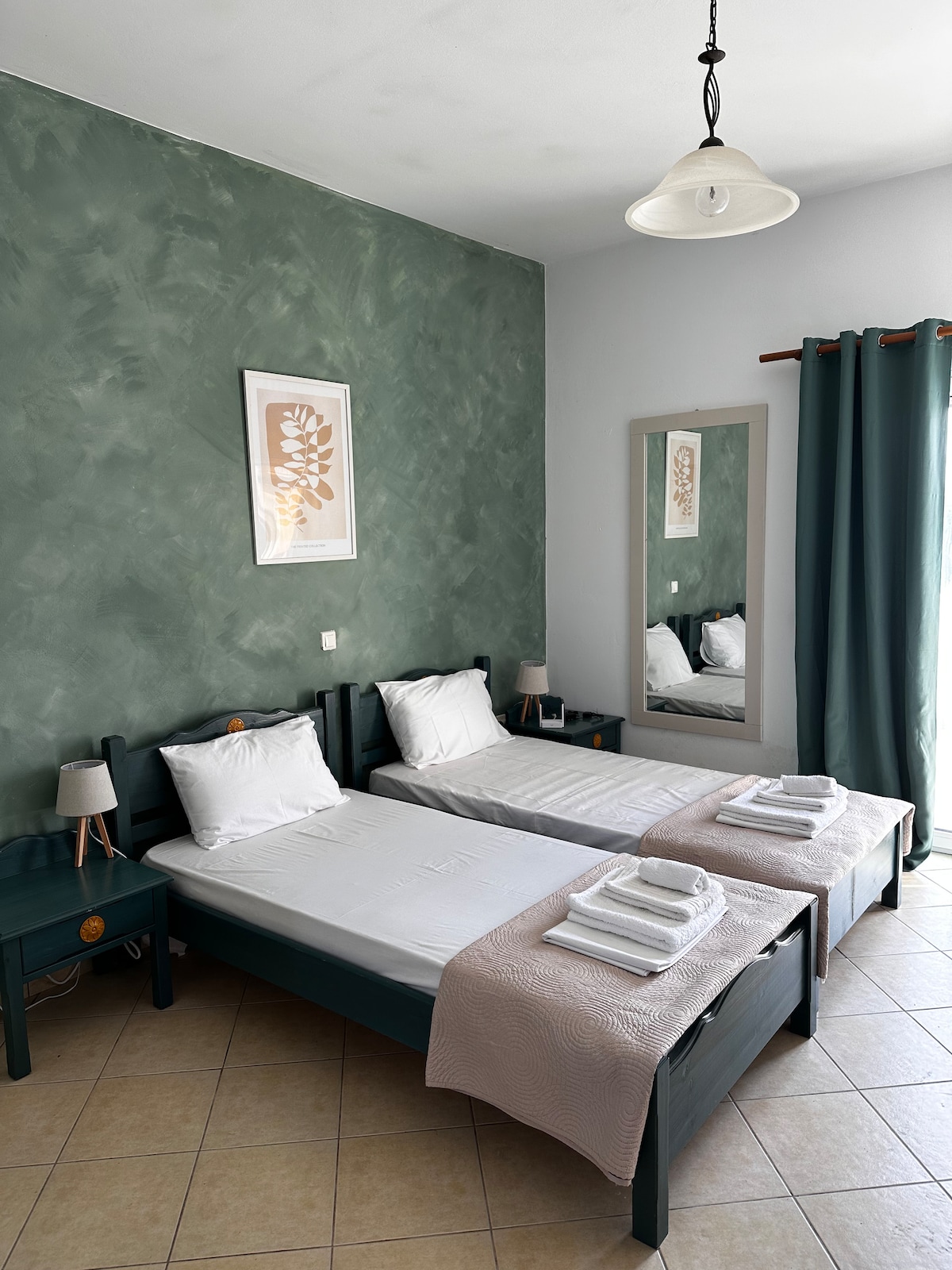 Less than one kilometer outside of the picturesque Elea village, you’ll find peace and serenity on the sandy shores of a private stretch near Tigania Beach, at the Finisia House. The property is perfect for families or couples but also a perfect choice for solo travelers.