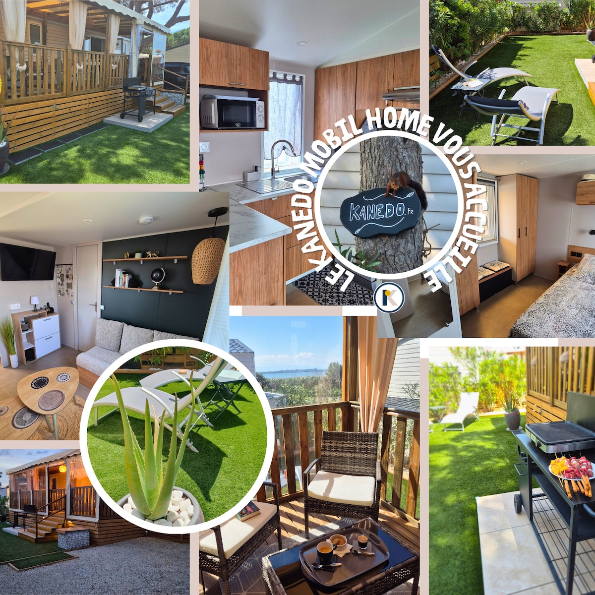 Mobil home CasaLuca tout confort de 3 chambres. 6 couchages de qualités et un canapé d’angle. 2 salles d'eau dont une dans la chambre parentale avec lit en 160. Espace cuisine avec four, Plaques cuissons, et micro onde. Séjour avec grand canapé d'angle et table 6 personnes. Tv écran plat. A l'extérieur, une grande terrasse couverte et abritée, salon et table pour des repas en extérieur. 2 transats et un salon dans le Jardin,ombragé en partie, par un Pin pour se détendre au soleil ou à l'ombre