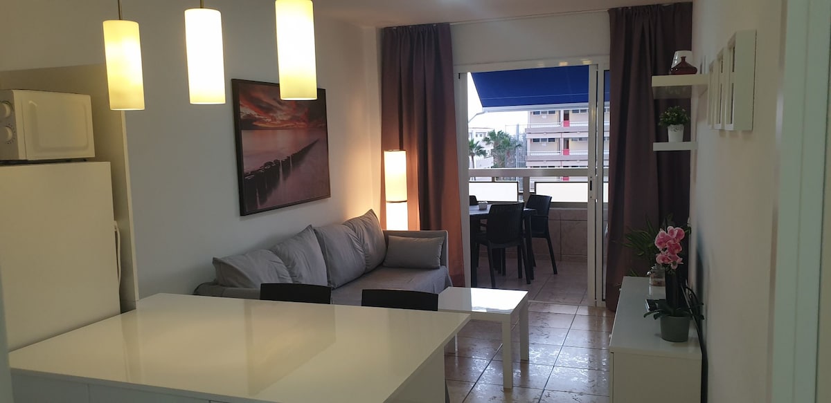 Aire acondicionado, smart TV 55" fibra internet.En una zona muy céntrica y tranquila. Acogedor con sala de estar con sofa cama y dormitorio con cama de matrimonio, cocina y baño independiente, dispone de un restaurante todo dentro de un hotel. Ubicado frente a un centro comercial con farmacias ,mercados, restaurantes, discotecas y al lado de la playa. Situado en el sur de la isla en unos de los puntos más turisticos y visitados. Dispone de Piscinas una para adultos y otra para niños