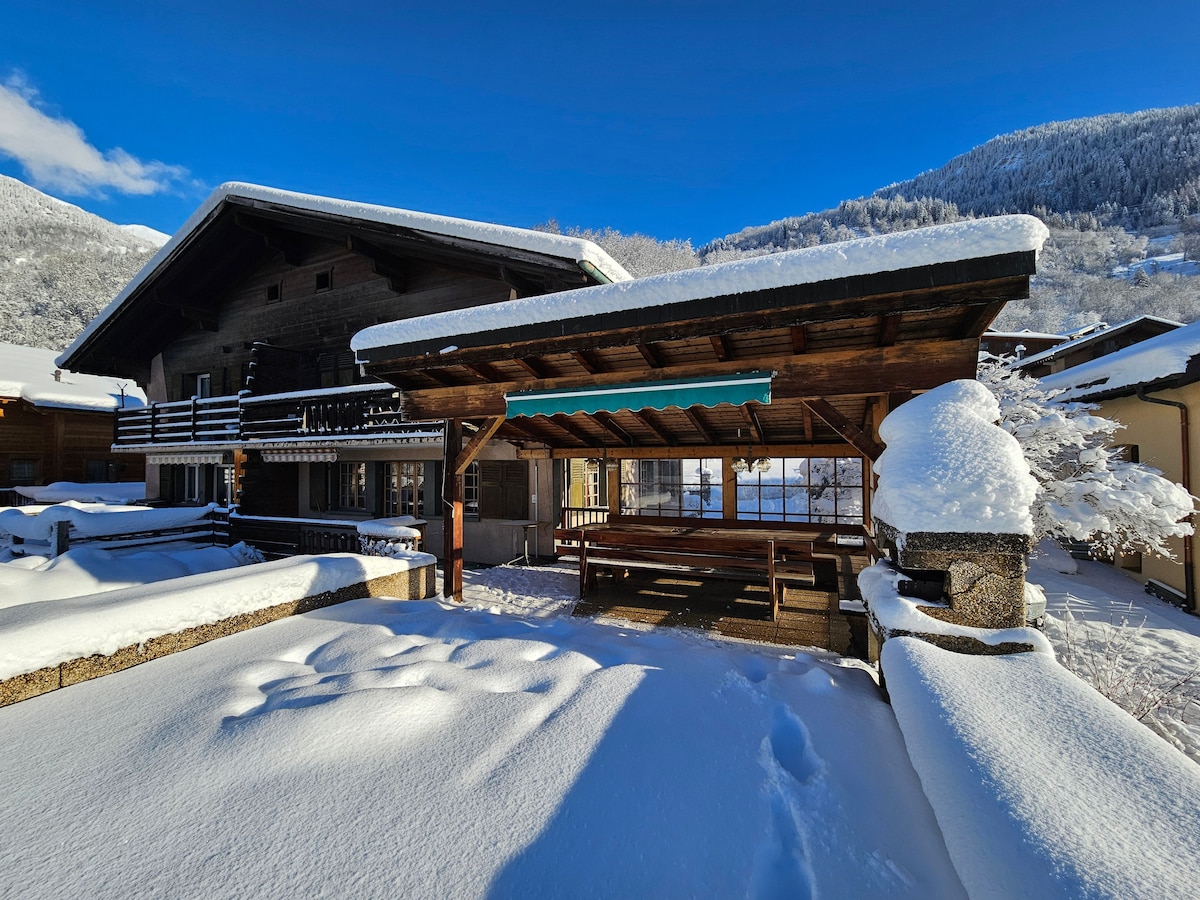 Welcome to this charming classic Swiss chalet within walking distance of public transit to the ski lifts. Enjoy its beautiful views and a cozy warm atmosphere. Perfect for both families and weekend getaways among friends. Bienvenue dans ce chalet charmant situé proche des transports publics. Profitez des vues épatantes sur les alpes Suisses, de fondues conviales, et d'une expérience alpine authentique! Parfait pour les familles et les weekends entre amis.
