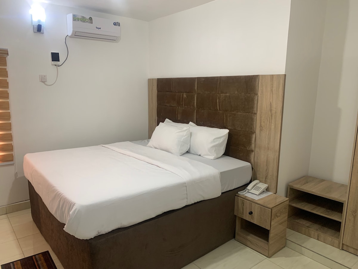 A spacious 2 bedroom apartment with lots and lots of free amenities like free wifi, 24 hours electricity, free cleaning services, outdoor bar, you can relax with the whole family at this peaceful place with maximum comfort. Security is top notch and guaranteed, a driver available to drive you around available at low fee.