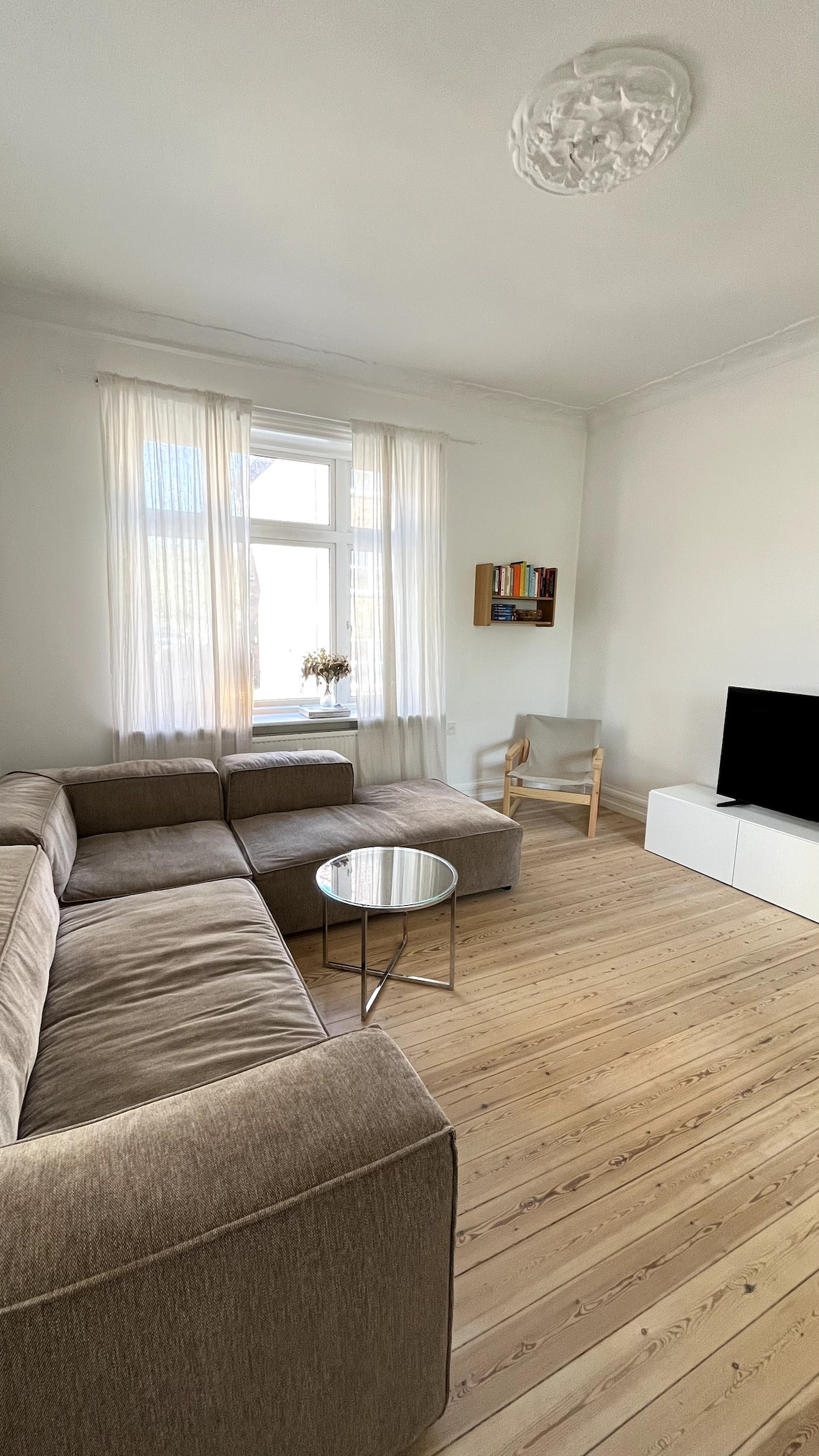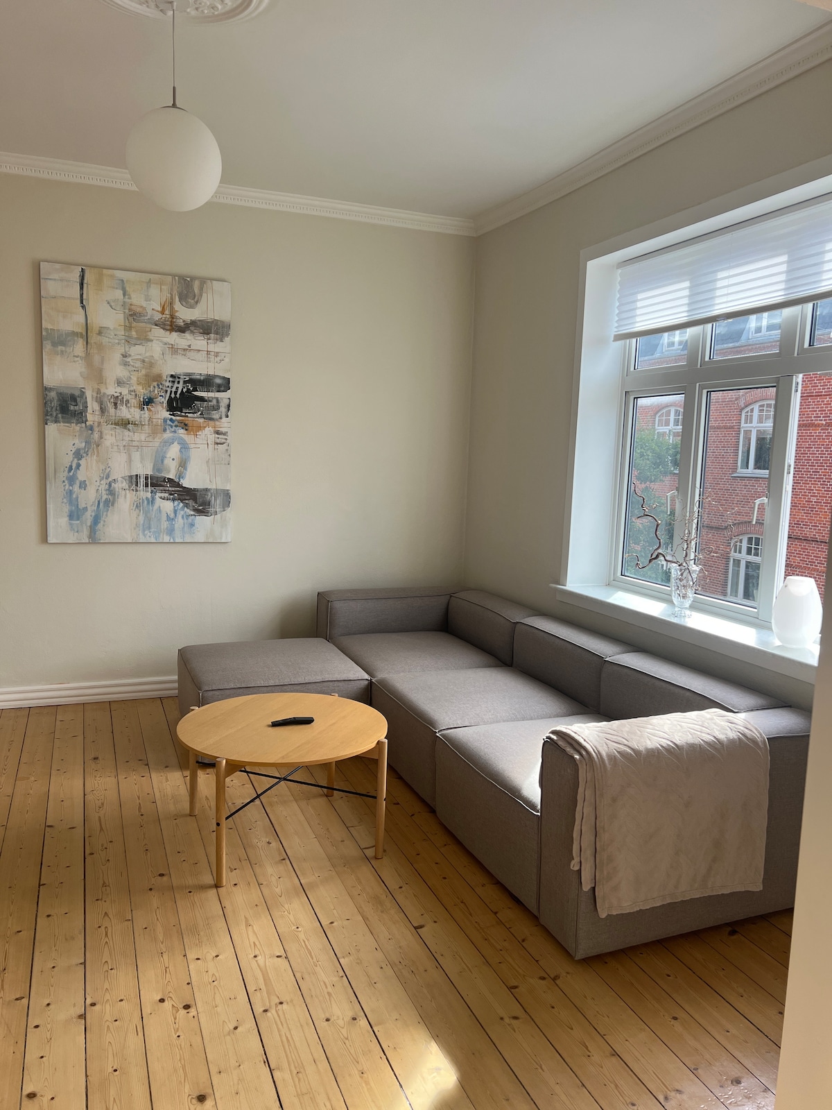 70 m2 apartment in the center of Esbjerg. Close to the harbor and the town square. Small balcony with a view of town center. Park with green area 50 m from apartment. Small garden area with table/chairs down on the ground floor which is shared by all four apartments.