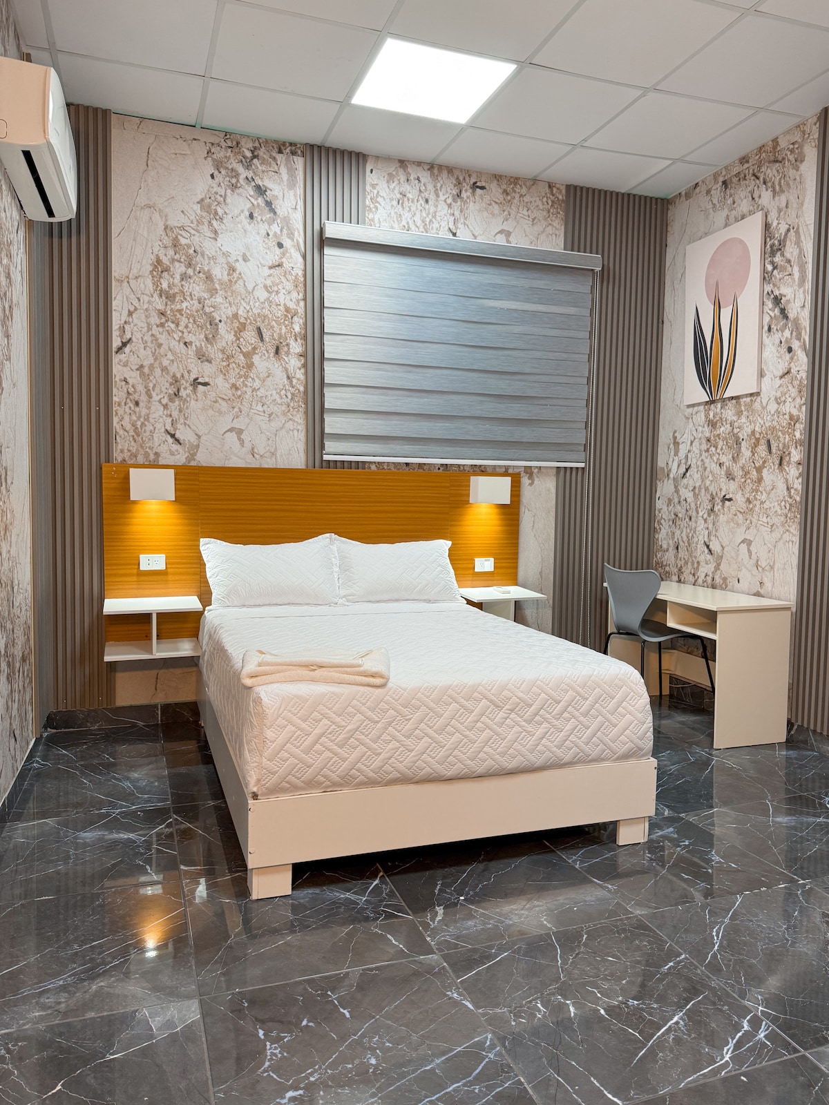 Amazing city hotel room in the prime center of Dominican Republic, in the town of Moca, a place full of history and cultural experiences. The location is just an hour drive away from beautiful beaches, and even closer to amazing ecotourism, local attractions, and historic venues. Its centered location makes it easy to get to any part of the country, and its staff and amenities won’t disappoint you! Come to Green Palace, and let us treat you as a king/queen!