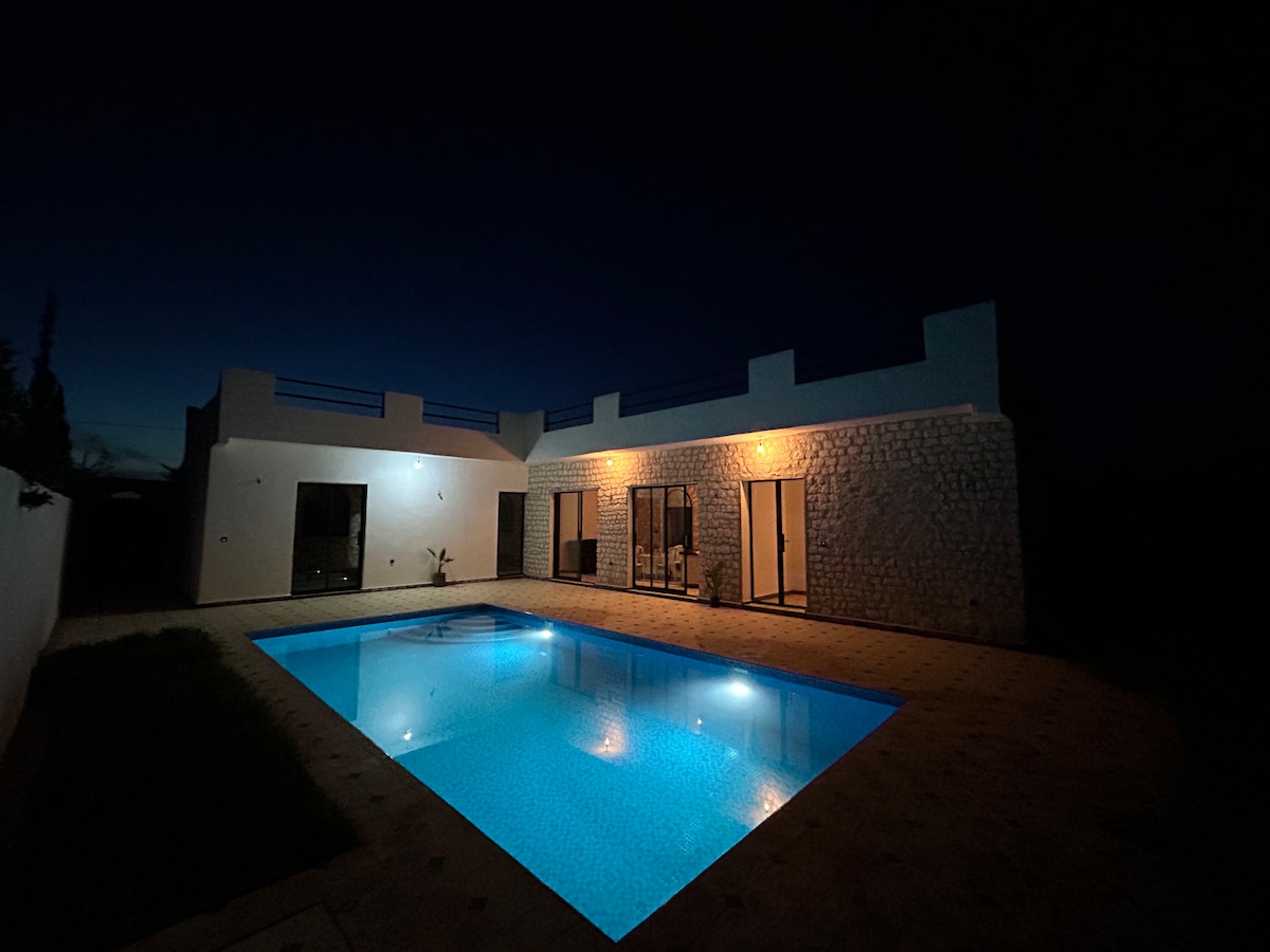 Escape to our charming stone villa for a tranquil family getaway. Nestled in a serene haven just 15 minutes from Essaouira, our villa offers panoramic views and complete seclusion. With 5 bedrooms, 4 bathrooms, spacious living areas, and an equipped kitchen, it's perfect for relaxation. Enjoy the crystal-clear swimming pool and sun-drenched terrace overlooking lush gardens. Immerse yourself in the essence of Essaouira while creating unforgettable memories with your loved ones.