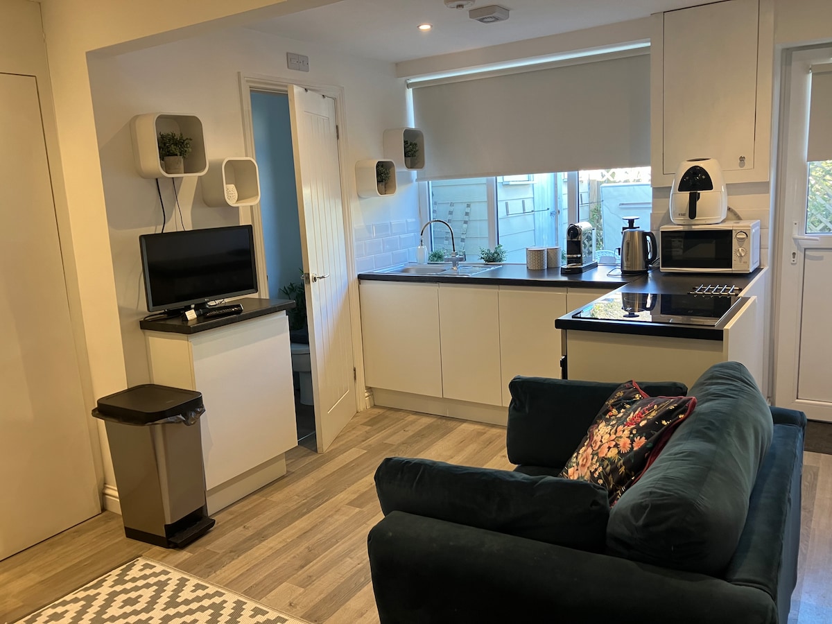 Quiet open plan living space, one double bed. Separate shower room. Internet and SkyTV. Walking distance or 5 mins by car from train station into London via Southend Central station, bus route into town. 20 mins to Airport by car. Interesting country walks along Essex creeks and shore. Good food outlets and supermarket 3 mins away. Mini kitchen. Sitting area in garden. Well controlled pet welcome. Ideal for business trips and quiet getaways. Unrestricted free parking in the street.