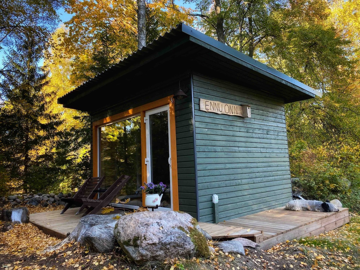 Kick back and relax in this calm, recently finished (August 2022) cozy Saunahouse with an outdoor patio and eating area near Lake Viljandi. Saunahouse is located in a private yard and is perfect for 2 people, though an extra is possible. As the sauna is located in a private yard, there will be two extremely friendly Leonbergers (see the picture at the end) freely roaming around yard and maybe looking for belly-rubs or two, which is something to be considered.