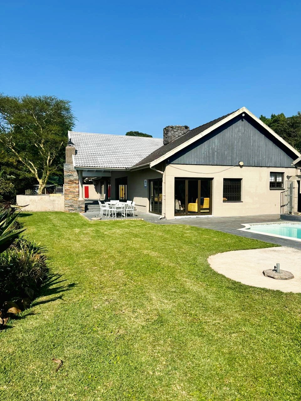 This much-loved family home is an amazing space of peace and tranquility. It is designed for outdoor living with a lovely veranda, pergola area for al fresco dining and expansive lawns with a lap pool. The area is safe and convenient with access to excellent restaurants, a woolies food the highway. House comes complete with full solar system, wifi, a work area, and a helper to allow you to relax. Central to Durban beach (20 mins), Umhlanga (25mins), airport (40mins) & the midlands/ Drakensburg.