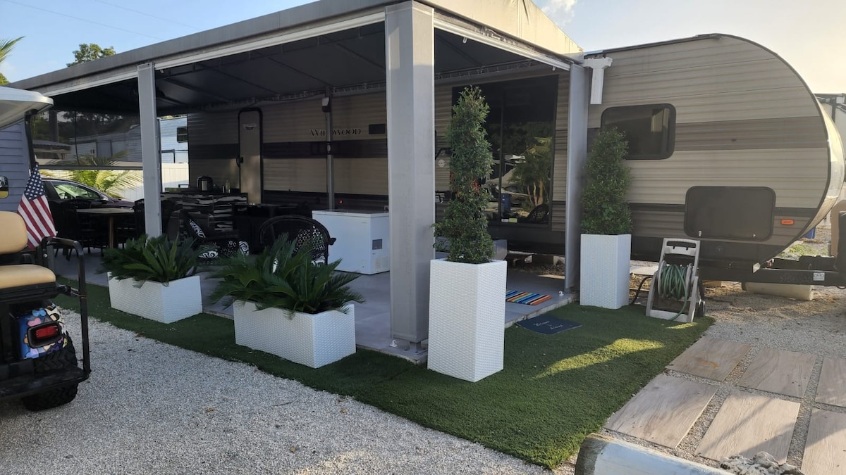 3pm check-in time and 11am check-out time, you will enjoy Miami's beautiful sunny day in this exquisite 22" Camper/Mobil home. It has a full bathroom but SMALL, especially for someone that is recovering from a medical treatment. Please let us be aware of who will be joining the property. And remember this is a Camper and not a house room, so some functions are different. Enjoy the Camper moment