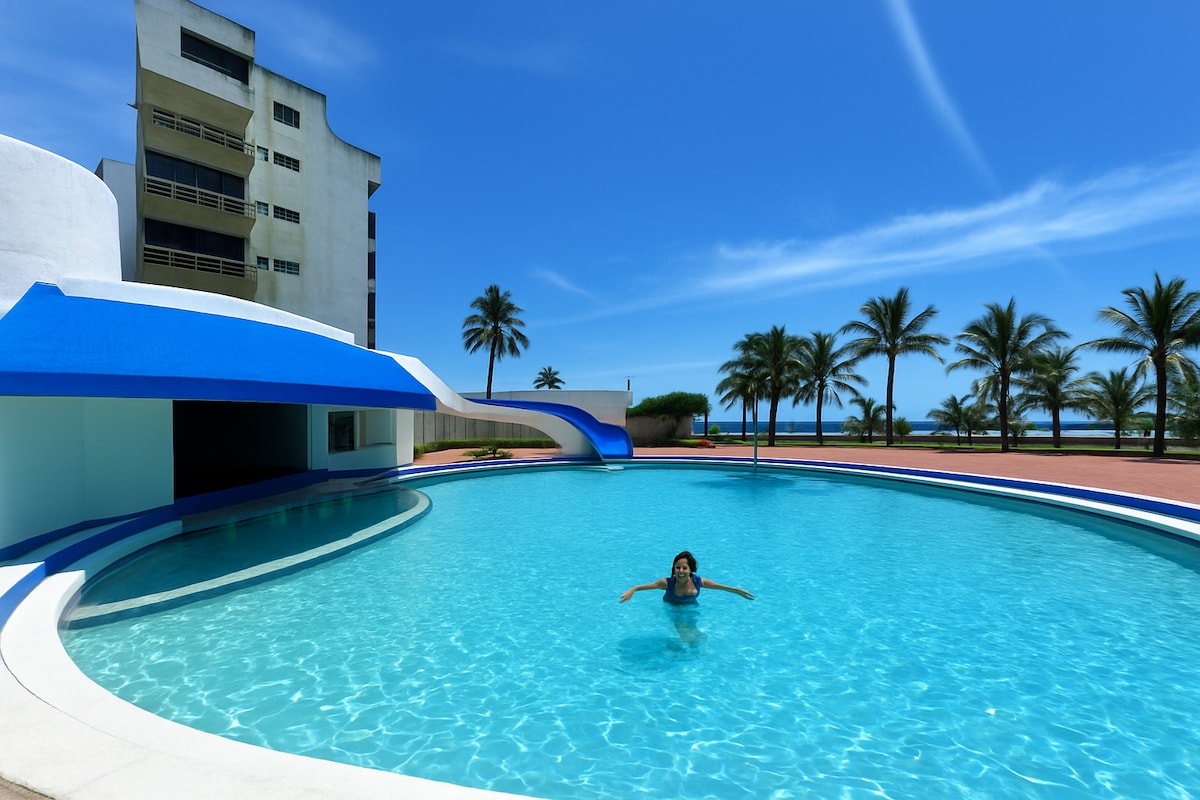 No Airbnb Fees: What You See Is What You Pay! 🌊 Relax with ocean views! Enjoy 2 bedrooms: one with a king-size bed and other with a bunk bed and a pullout single bed. The space features 2 bathrooms with hot water, an equipped kitchen, Wi-Fi, TV, and 3 air conditioners. The gated community includes a swimming pool, BBQ areas, direct beach access, and private parking. Safe and secure, with a power generator available on weekends and holidays. 📅 Book now and enjoy an unforgettable getaway! 💙