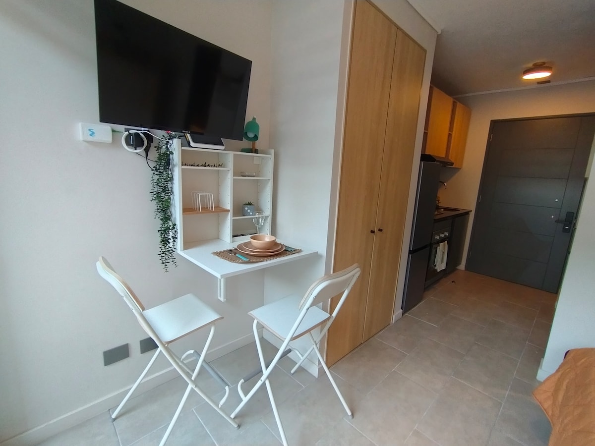 Welcome to our elegant apartment, located in Santiago Centro. Just steps away from amazing attractions such as Club Hípico, Movistar Arena, Fantasilandia, and the lively Meigg's and University neighborhoods, you'll enjoy the best location. A modern space designed to accommodate 2 to 4 people, equipped with everything needed for a comfortable stay. Additionally, the building features a swimming pool, gym, laundry facilities, and common rooms. Your adventure in Santiago starts here. Book now!