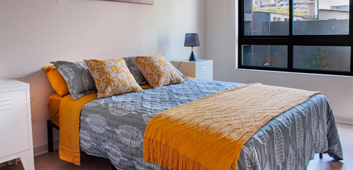 Welcome to our elegant apartment, located in Santiago Centro. Just steps away from amazing attractions such as Club Hípico, Movistar Arena, Fantasilandia, and the lively Meigg's and University neighborhoods, you'll enjoy the best location. A modern space designed to accommodate 2 to 4 people, equipped with everything needed for a comfortable stay. Additionally, the building features a swimming pool, gym, laundry facilities, and common rooms. Your adventure in Santiago starts here. Book now!