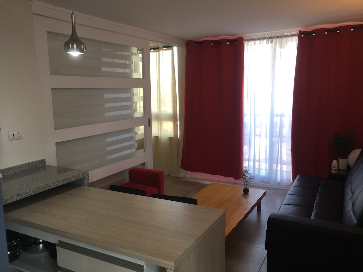 Este lugar tiene una ubicación estratégica: ¡será muy fácil planear tu visita! Completamente equipado cerca del Movistar Arena, Fantasilandia y del centro de Santiago. Luminoso estudio; cama doble, cocina full, Smart TV, WiFi y balcón, en edificio nuevo. Perfecto para parejas, viajeros de trabajo o quienes buscan comodidad y buena ubicación. ¡Te esperamos con sábanas y toallas, secador, cafetera y todo lo necesario para una estadía genial! No dudes en consultarnos por fechas y necesidades ;)