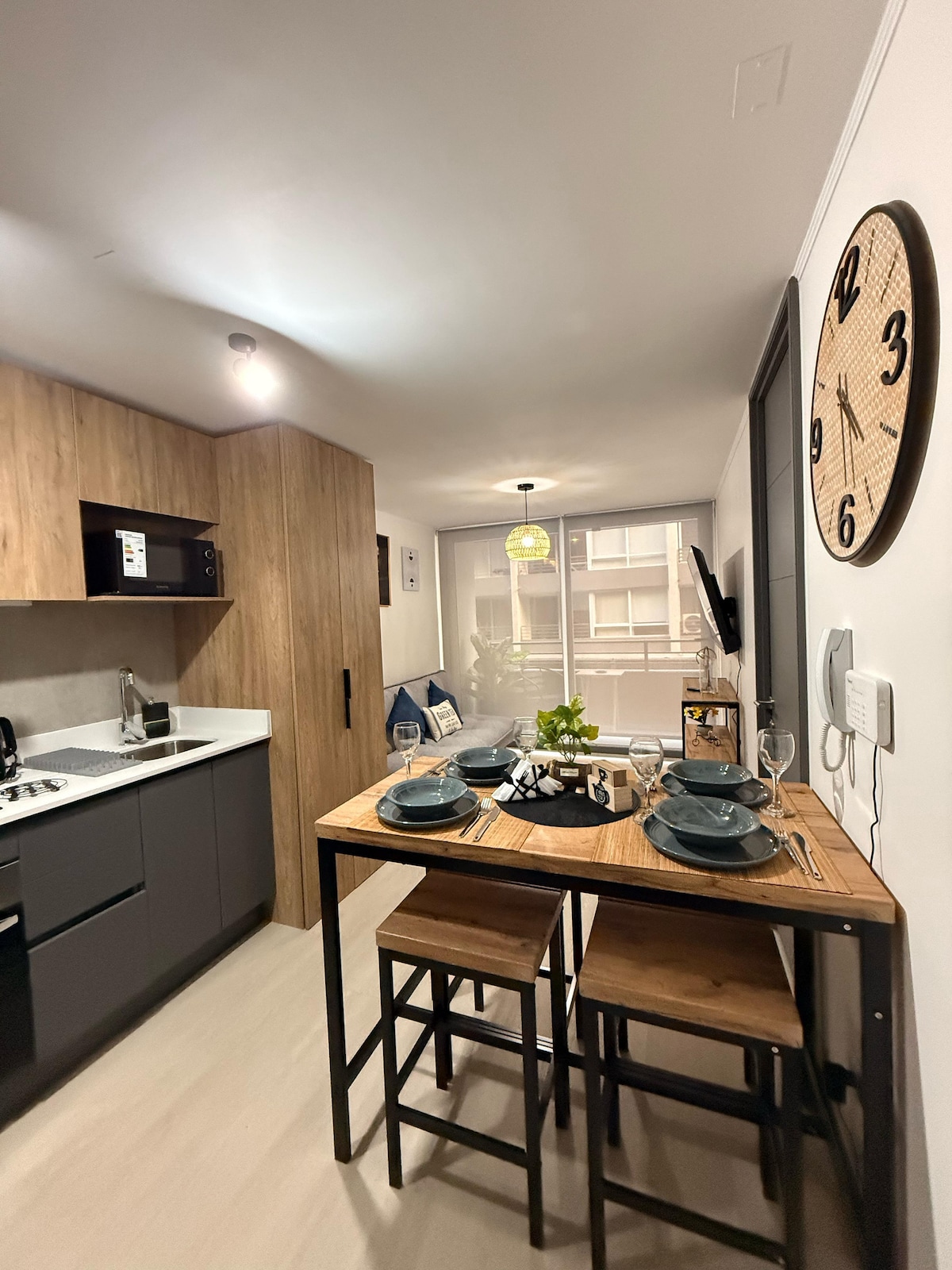 Disfruta de un loft acogedor y moderno en una de las zonas más tradicionales. Ideal para parejas, estudiantes o viajes de trabajo. •Espacio abierto con diseño moderno y luminoso. •Cocina totalmente equipada. •Balcón privado. •Internet de alta velocidad, ideal para teletrabajo. •Smart TV para tu entretenimiento. •Barrio República, lleno de cafeterías, restaurantes. ・A pasos del metro y a minutos del centro histórico de Santiago Excelente conexión con universidades, museos y parques.