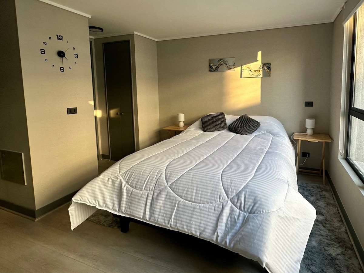 Welcome to our elegant apartment, located in Santiago Centro. Just steps away from amazing attractions such as Club Hípico, Movistar Arena, Fantasilandia, and the lively Meigg's and University neighborhoods, you'll enjoy the best location. A modern space designed to accommodate 2 to 4 people, equipped with everything needed for a comfortable stay. Additionally, the building features a swimming pool, gym, laundry facilities, and common rooms. Your adventure in Santiago starts here. Book now!