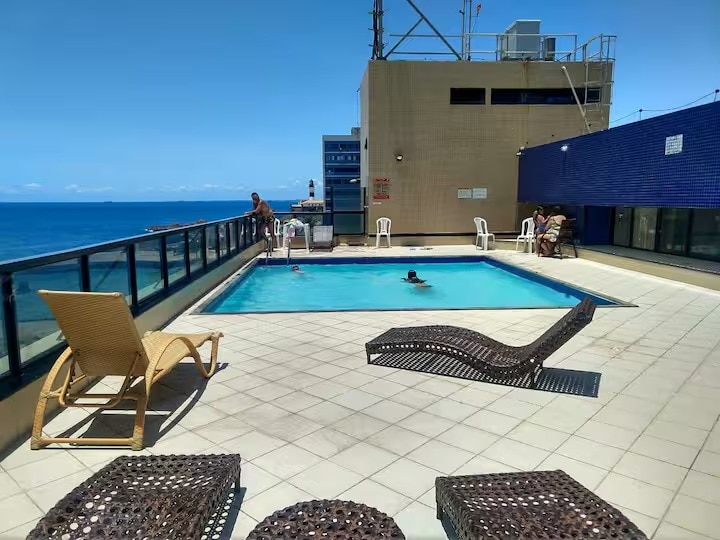 Sofisticado Loft mobiliado com deslumbrante vista para o mar. Localizado no Smart Farol da Barra, o aconchegante imóvel está a uma quadra da praia do Farol da Barra, em pleno circuito do carnaval de Salvador. Fica próximo ao Morro do Cristo, da Praia do Porto da Barra, do Shopping Barra, mas, principalmente, do Farol da Barra, que fica a 5 minutos andando. O condomínio conta com uma bem equipada academia, salão de festas, coworking, lavanderia self-service e piscina no rooftop.