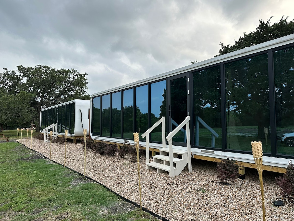 Make some memories at this unique and family-friendly place. Relax at this peaceful place to stay. Nestled in a new developed RV park resort, 55 miles west of Houston, 60 miles south of Austin; 95miles east of San Antonio city limit. Round Top and Schulenburg water park just within 25 mins drive. fishing, walking trail, camping, BBQ, stary night life, a perfect place for family friends reconnects. We offer club house, more cabin homes & camp spaces to comply with your future group gathering
