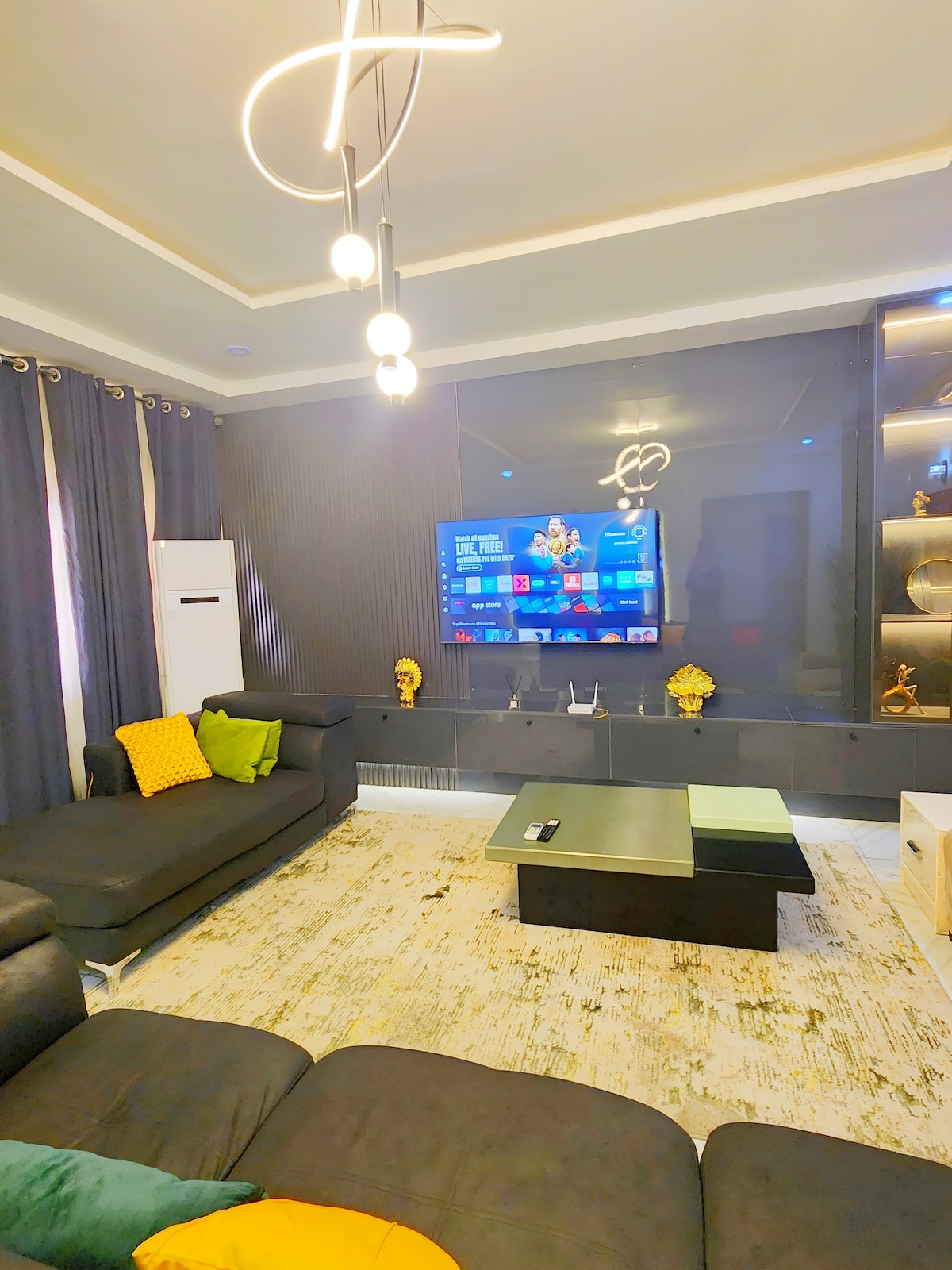 ✨ Luxury 3-Bedroom Apartment in Jahi, Abuja Step into comfort and sophistication in this modern 3-bed, 3-bath apartment near Jahi Mall and Shafa Fuel Station. The spacious living room features a large smart TV with Netflix, plush sofas, and ambient lighting for cozy relaxation. Enjoy a fully equipped kitchen, stylish dining area, and serene bedrooms—perfect for families, travelers, and business guests seeking premium comfort in one of Abuja’s most desirable neighborhoods.