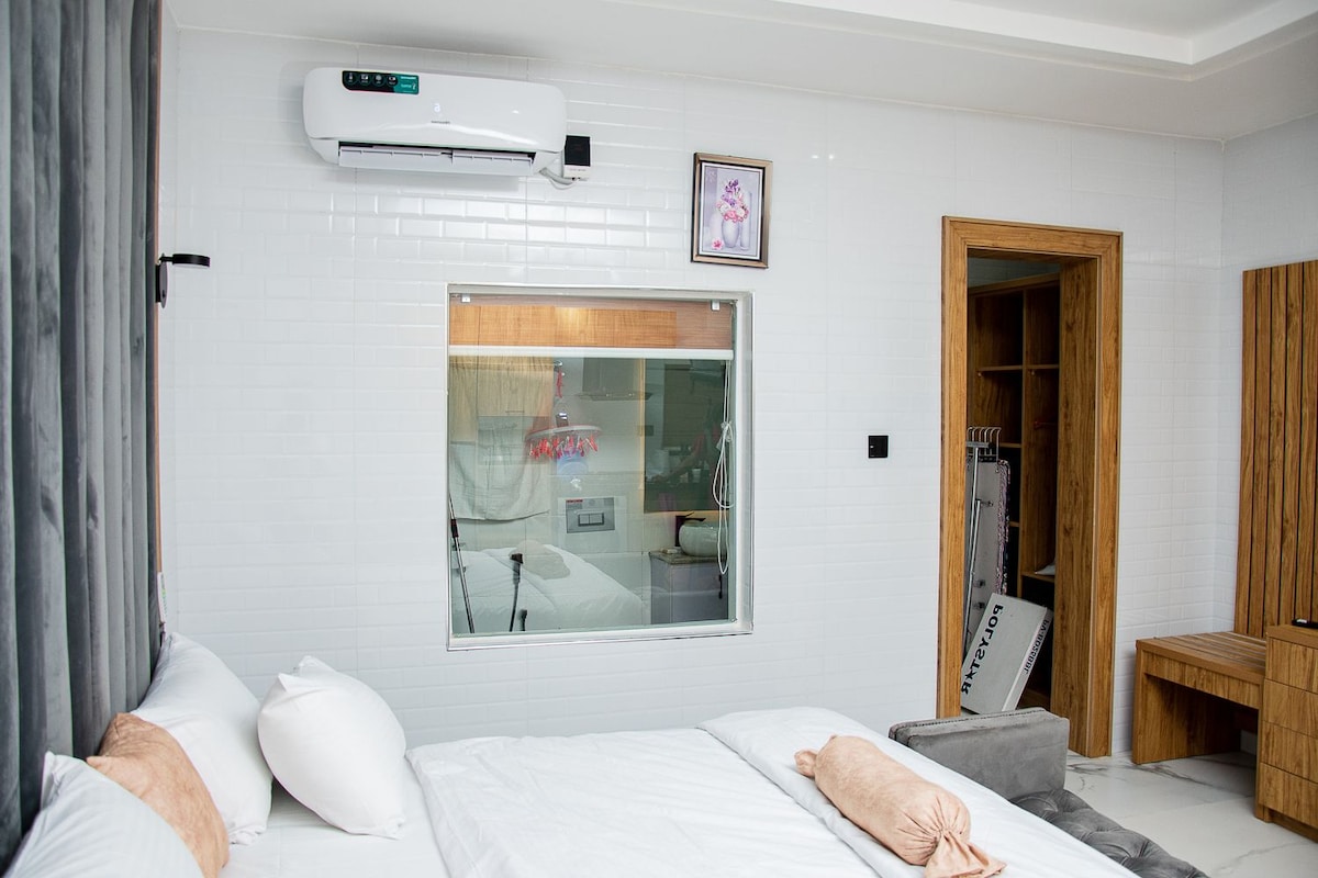 This is a stylish and unique available 2-bedroom house on its own with PS5, Snooker & 24/7 Power Supply (AEDC, Inverter System and Solar Power Installation) Easy Access to Town, Security and above all No Traffic within its locality. This house is super ideal for Staycation, Short Letting and home away from home experience. Our guest can actually confirm that, the house is more beautiful in real time than the pics. A great and comfortable stay await you. Go ahead and book now.