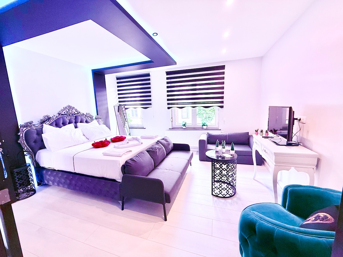 Ruime suites van 70 m2 met Boxspring 180cm, Sofabed, zitruimte, privé terras, luxueuze badkamer met bubbelbad, apart toilet en volledig ingerichte keuken. Sauna en binnen zwembad in gemeenschappelijke ruimte tussen 10:00 en 19:00 beschikbaar na reservatie. De ruimte is ideaal voor koppels of gezinnen tot max. 4 personen (én baby). Aparte ingang. Geniet van onze gastvrijheid. Waarborg €250 vereist