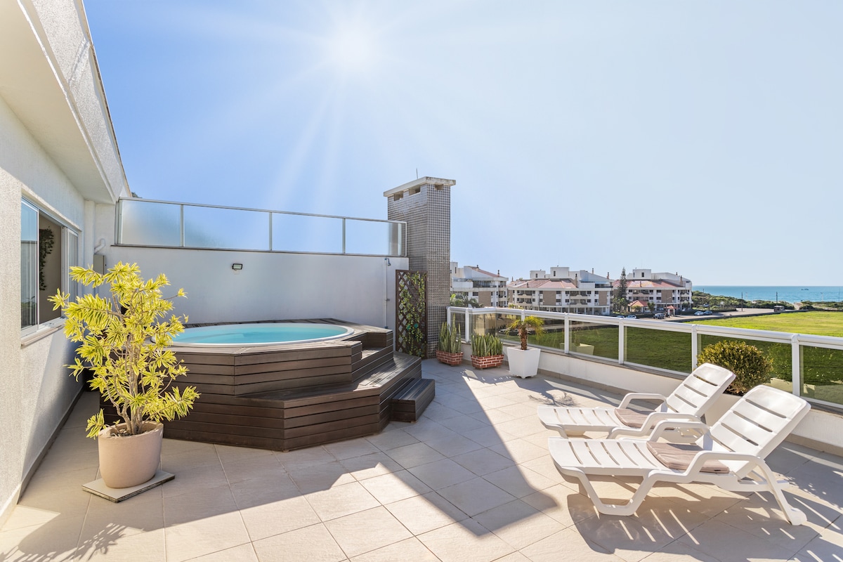 Luxury penthouse with total privacy, ocean view, jacuzzi, barbecue and large outdoor terrace in front of Campeche beach, one of the most beautiful beaches in Florianópolis! Spending your vacation at the Thai Beach Home Spa condo is like being at a 5 star resort! With a heated indoor pool, outdoor infinity pool, indoor and outdoor jacuzzis, gym, playground, an incredible common area! Central location near restaurants, bakeries, supermarkets and shops.