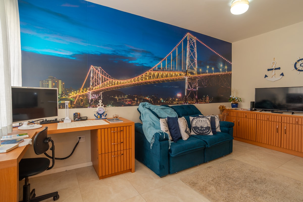 Looking for a cozy checkpoint in the heart of the city? You'll feel at home in this well-planned loft. Located in downtown Florianopolis, it's perfect for someone looking to explore the island or attend to an event nearby. Includes: - Queen bed - Complete gourmet kitchen - Washer and drier - Big table for meals and Home Office - 360 Rotational TV so you can watch from anywhere in the loft - Clean and modern bathroom - Wi-fi - Complete air conditioning
