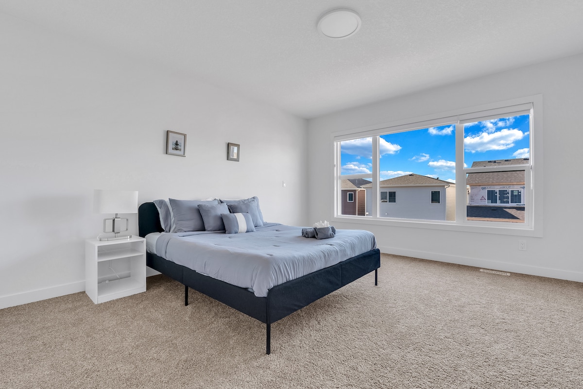 This gorgeous gem nestled in the heart of Calgary's premiere resort Community: Mahogany! Direct access to bus routes! Light & Bright, work from home in cozy work from home office. Well-equipped home has 2 family rooms with separate TVs, 4 bedrooms with super comfy memory foam mattresses and big beautiful windows. Close to Chairman's SteakHouse and Analog Coffee! Take a walk to see the splendor of the Mahogany Wetlands or head to the waterpark at the world's largest YMCA only a few minutes away!