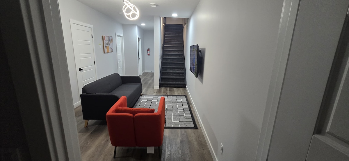 Welcome to our charming Walkout Basement retreat by the Bow River! Recently renovated, our space offers a private entrance, huge windows, high ceilings, cozy fireplace and 2 stylish bedrooms with comfortable queen and double beds. You will love the convenience and comfort of our space. Enjoy direct access to the backyard. With a convenient driveway parking spot. You’re just steps away from plaza, Sobeys grocery store, restaurants, and the World's largest Seton YMCA with a waterpark and Hospital