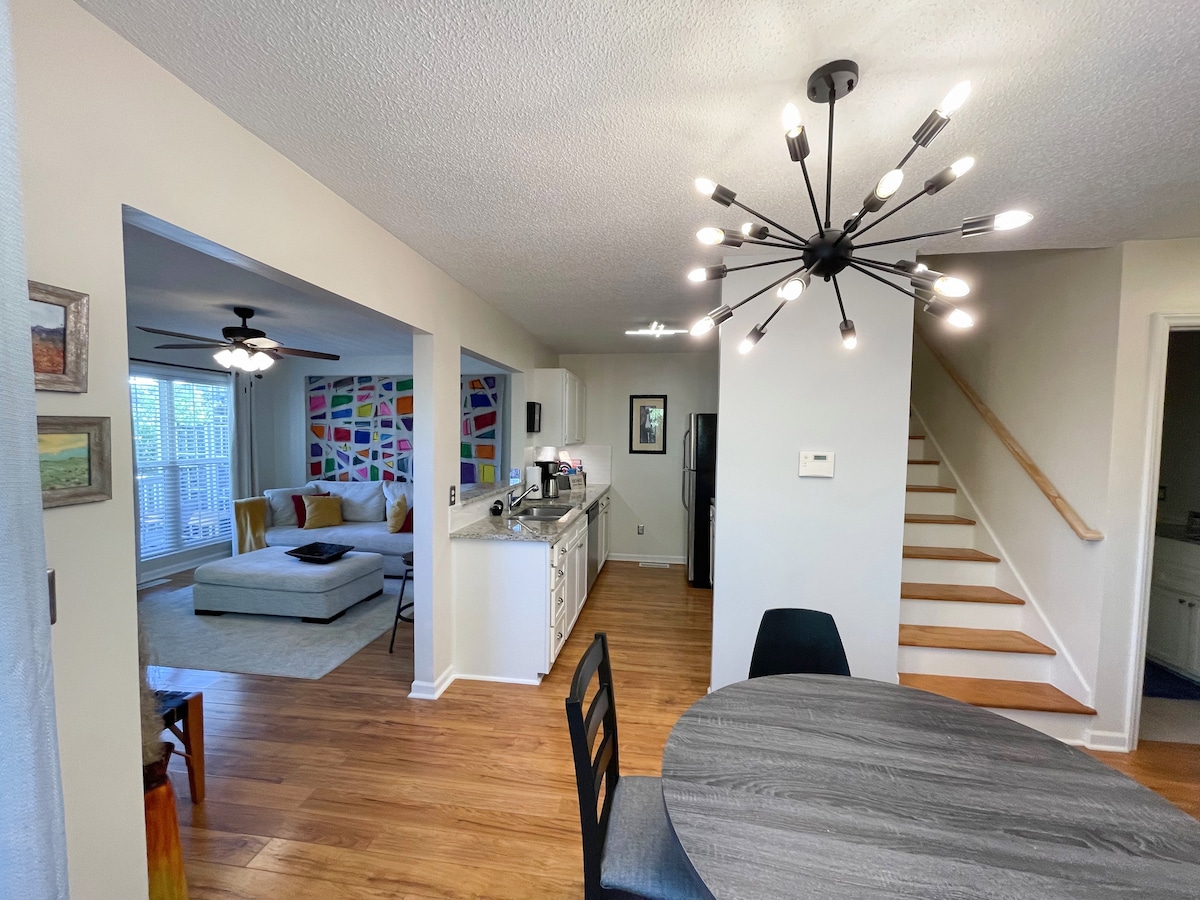 Welcome to our sleek and stylish 3 bedroom, 3.5 bathroom townhome, where modern decor meets ultimate comfort. This newly decorated space boasts contemporary furnishings and is fully equipped with all you need for a memorable stay. Enjoy the convenience of Wi-Fi and smart TVs in every room, ensuring entertainment is always available. Whether you're lounging in the spacious living area or whipping up a meal in the fully furnished kitchen, this townhome is designed to make you feel right at home.