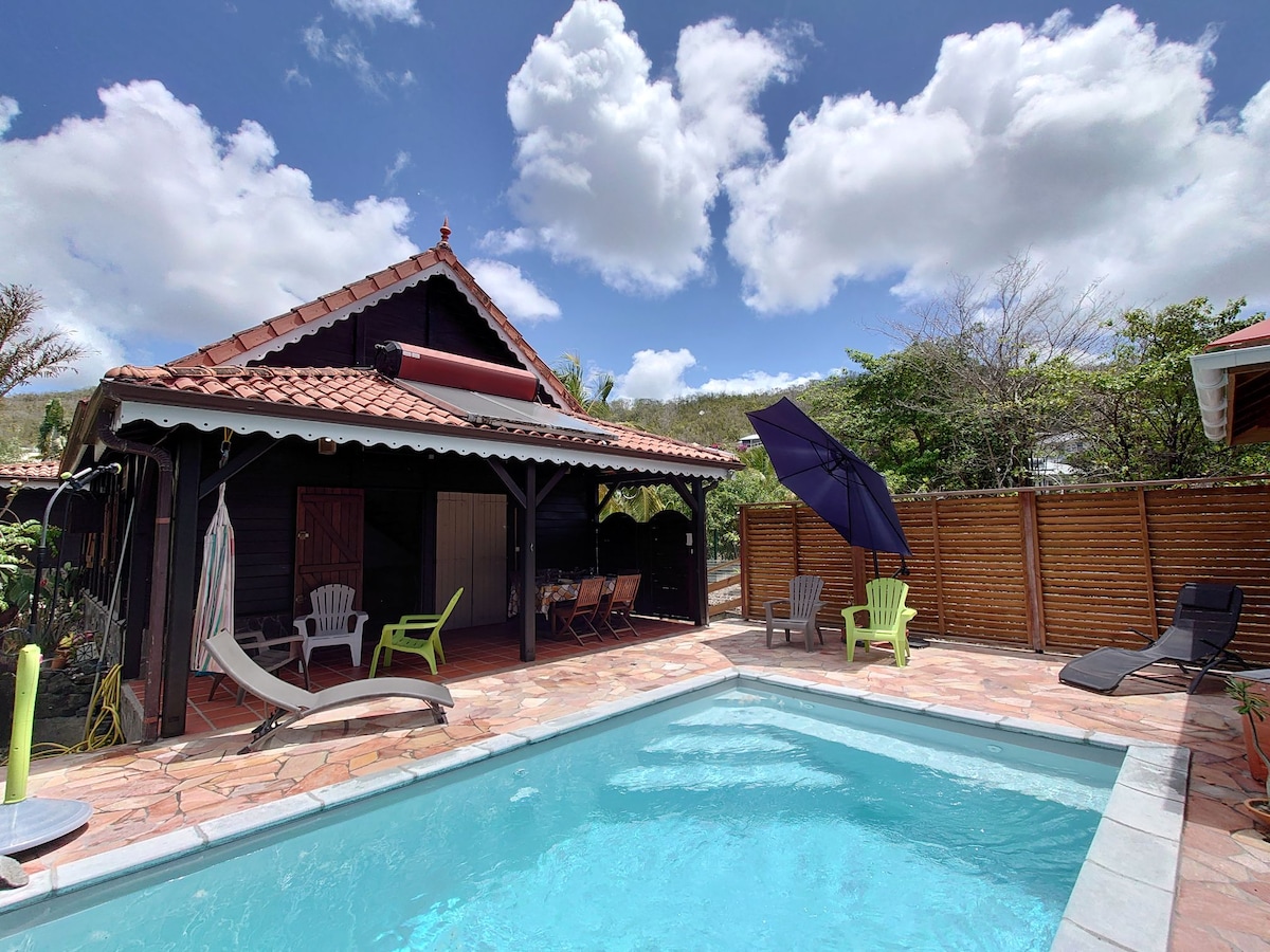 bungalow tout en bois de 44m sans aucun vis à vis, implanté dans un grand jardin planté de fruitiers,vue mer et montagne pelée.C'est l'unique bien à loué sur ce grand terrain et vous serez comme un peu seul au monde, Idéal pour ceux et celles qui veulent de l'intimité, qui aiment la nature et la vie au grand air,vous serez à coté des plus belles randonnées de l'île.