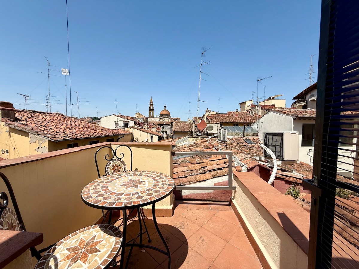 Grazioso e tranquillo monolocale a due passi dal Duomo di Firenze. 2 piano con ascensore. La sua bellissima e spaziosa terrazza vi lascerà senza fiato con la sua magnifica vista sulla Cupola del Duomo. Il terrazzo è attrezzato e ricco di piante per potervi rilassare in tutta tranquillità con un buon bicchiere di vino dopo una lunga giornata tra le vie di Firenze. All'interno troverete un grazioso open space con cucina, letto matrimoniale, smart TV, aria condizionata e un bagno con doccia.
